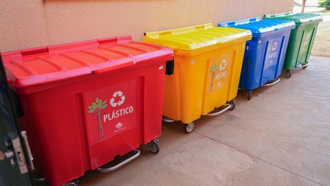 Foram instaladas lixeiras para separação de recicláveis, coletores específicos para pilhas, baterias, tampinhas e lacres, além de contêineres para materiais volumosos, promovendo a estrutura necessária para o descarte consciente.