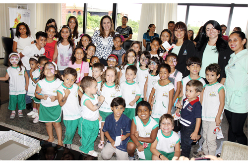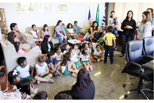 Na ocasião, a Presidente apresentou o gabinete às crianças e cumprimentou a aluna da brinquedoteca do Fórum de Palmas, Maria Clara Martins Marinho, vencedora do 1º Concurso de Redação e Desenho promovido pelo Conselho Nacional de Justiça - CNJ. “Você hoje é conhecida em todo Brasil. Seu desenho entrou para a história. Espero no futuro ver seus quadros aqui”, disse a presidente. Maria Clara, a vencedora do concurso, explicou o significado do seu desenho, “eu fiz um desenho para mostrar que todo mundo é igual e que não tem espaço para o preconceito”.