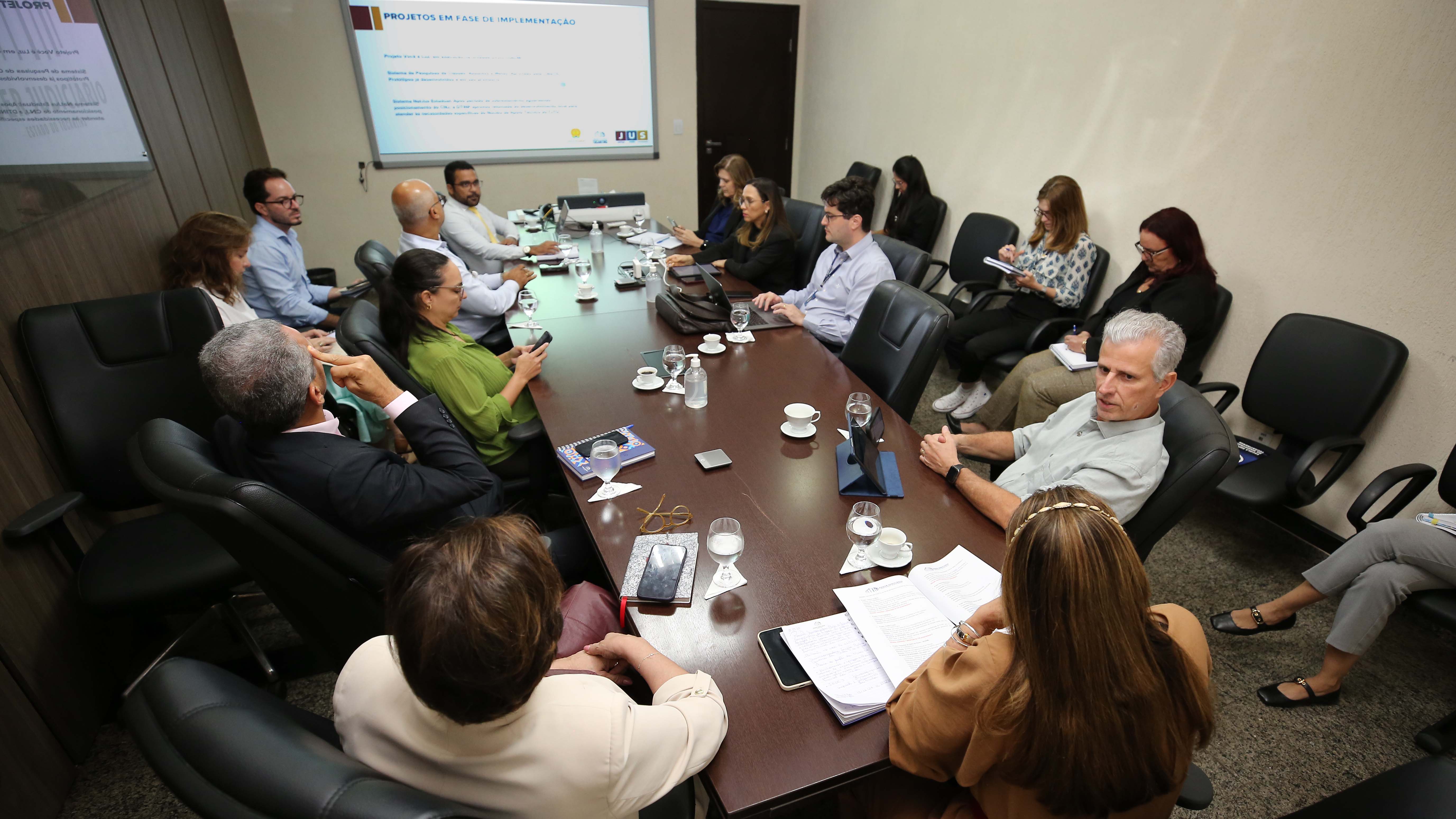 Também participaram da reunião: a vice-presidente do Comitê Gestor de Inovação, desembargadora Angela Haonat; o diretor-geral, Francisco Alves Cardoso Filho; o coordenador do Comitê Gestor da Inovação, juiz Esmar Custódio Vêncio Filho; a diretora do Centro de Comunicação Social, Paula Bittencourt ; a diretora de Tecnologia da Informação, Alice Setúbal; a coordenadora de Gestão Socioambiental e de Responsabilidade Social (COGERSA), Luciene Dantas; o diretor Judiciário, Wallson Brito da Silva; a coordenadora da Ouvidoria Judiciária, Alessandra Adorno; o coordenador da Coordenadoria de Gestão Estratégica, Renato Alves Gomes; o coordenador do Inovassol, André Vinícius D’Oliveira Gomes; os(as)  servidores(as) do Inovassol, Ana Berenice de Aguiar Santana e Silva e Lucas Ferreira Gomes; além das assessoras de gabinete Kamilla Sousa Prado e Maria Clara Rezende Duarte Queiroz.