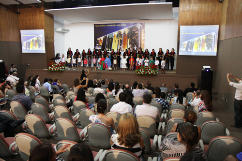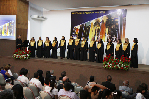 Antes das apresentações, os participantes assistiram ao vídeo elaborado para homenagear todos os servidores das 42 comarcas do Estado. No vídeo, imagens dos servidores em seus ambientes de trabalho ou com suas famílias sucediam umas às outras ao som de uma típica trilha natalina.