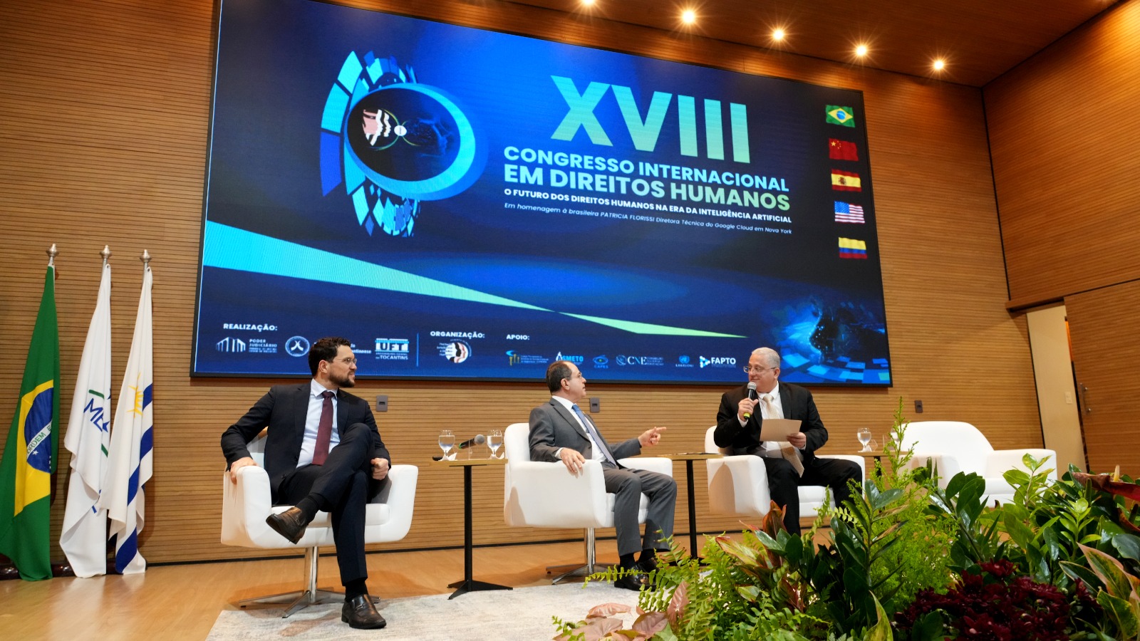 A programação do segundo dia do XVIII Congresso Internacional em Direitos Humanos teve no painel “Uso da IA nas Tomadas de Decisões”, as presenças do diretor geral da Esmat e presidente do Copedem, desembargador e professor doutor Marco Villas Boas; do senador da República pelo Tocantins Eduardo Gomes; do juiz federal Rafael Leite Paulo (TRF); e do professor doutor Tarsis Barreto como mediador. Nas discussões, a implementação de recursos de Inteligência Artificial Generativa (IAGen) como auxiliar na atuação Judicial.