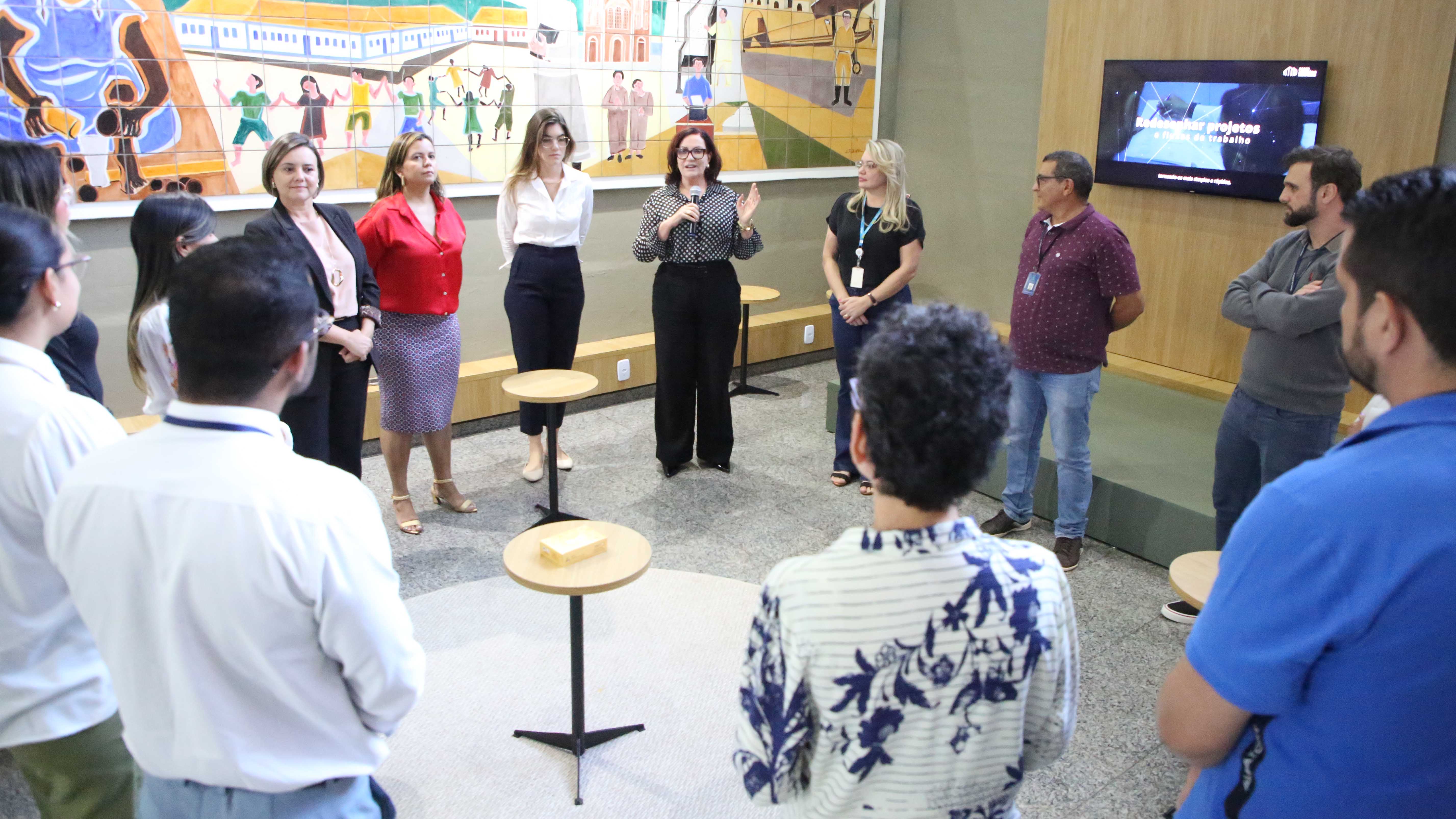 Participaram da dinâmica a presidente do TJTO, desembargadora Etelvina Maria Sampaio Felipe; o juiz auxiliar da Presidência, Roniclay Alves de Morais; a diretora-geral, Ana Carina Mendes Souto; a diretora de Comunicação, Kézia Reis; e os agentes de linguagem simples do Programa SimplesTOC