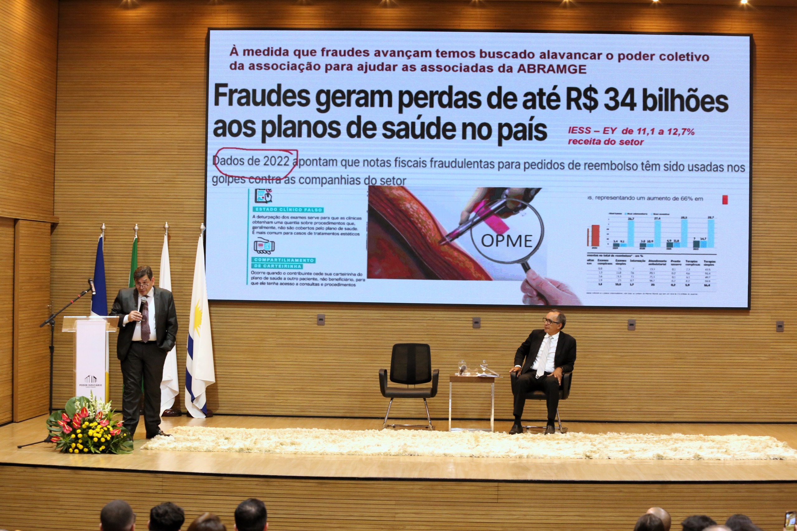 Esquemas fraudulentos como a criação de empresas fantasmas, fraude de reembolso, falso plano, inconsistências nas solicitações e procedimentos, assinatura falsa, alteração de identificador de boleto, procedimentos criados-não realizados, dentre outros, foram o tema do “Painel antifraudes na Saúde Suplementar” apresentado pelo superintendente médico da Associação Brasileira de Planos de Saúde (Abramge), Cássio Ide Alves. A mesa foi coordenada pelo juiz Gil de Araújo Corrêa.