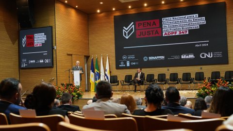 A união de esforços para transformar a realidade do sistema prisional brasileiro norteou a palestra “Pena Justa - Plano Nacional para o Enfrentamento do Estado de Coisas Inconstitucional nas Prisões Brasileiras – ADPF 347”, que abriu, nesta quarta-feira (24/4), o 93º Encontro Nacional dos Corregedores-Gerais da Justiça (Encoge) e 5º Fórum Fundiário Nacional, no Tribunal de Justiça do Tocantins (TJTO), em Palmas.