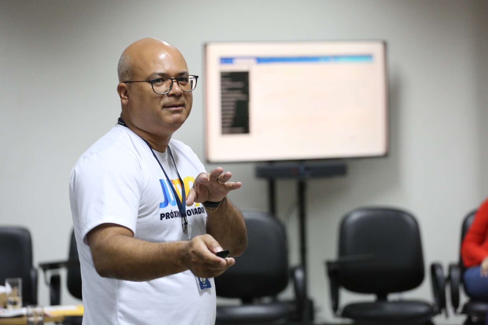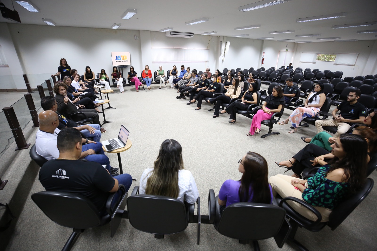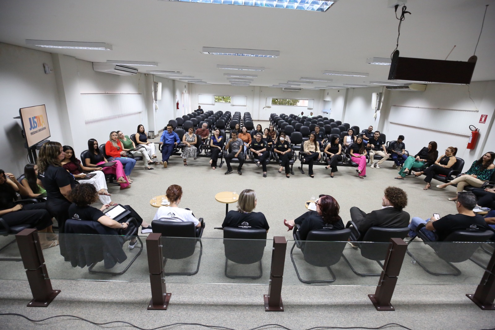 Reestruturação, inovação, saúde e bem-estar foram o fio condutor de um bate-papo participativo (e sem timidez), realizado na tarde de quarta-feira (25/9), entre a equipe do projeto "Justiça Mais Próxima e Inovadora" e servidores(as) da Comarca de Guaraí, na região Centro-Norte do Estado, a 190 km da capital Palmas.