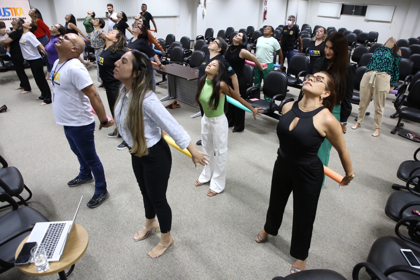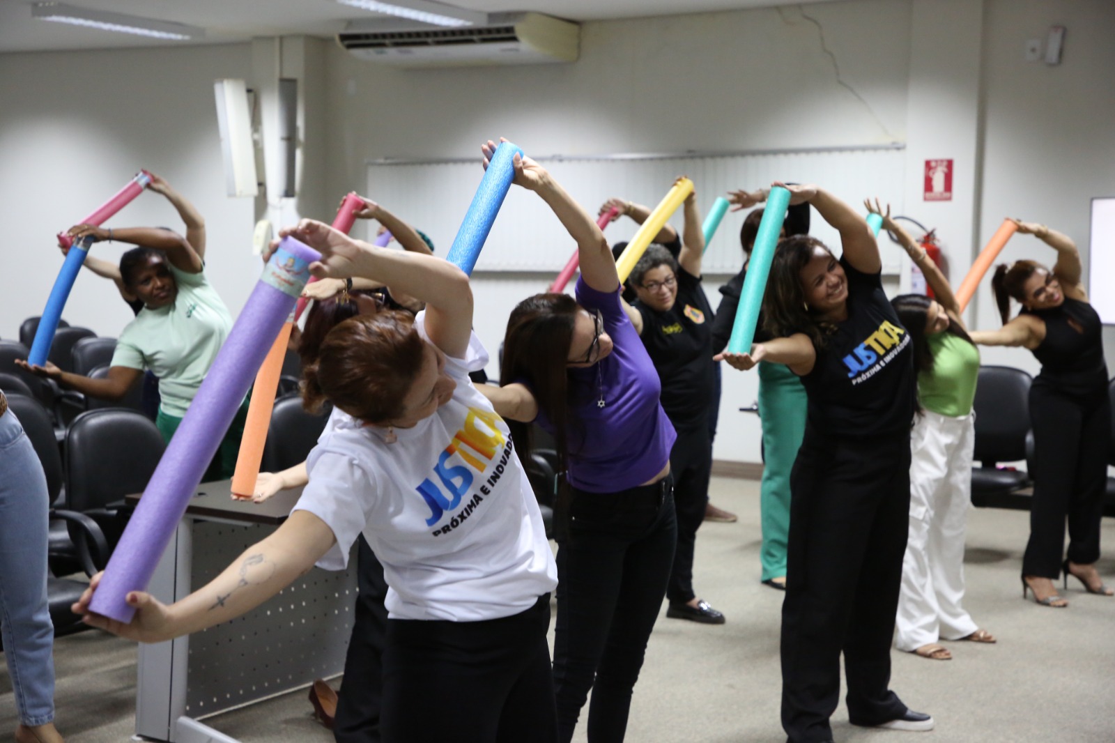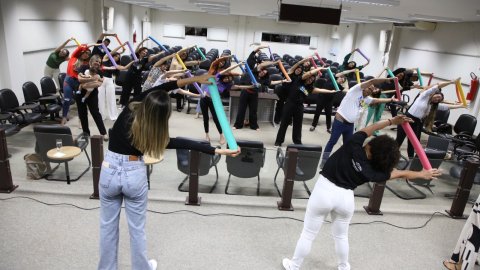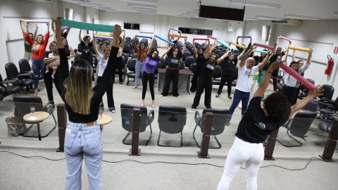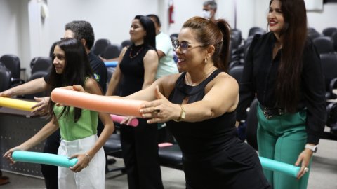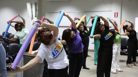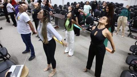 A medida foi muito celebrada pelos servidores locais, que já contam com a prática de alongamento e ginástica laboral com as fisioterapeutas, Gelmária Nunes e Suely Amorim que, no encontro desta quarta-feira (25/9) fizeram uma intervenção acompanhadas da fisioterapeuta do Cesau, Hozana Lemos.