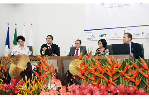 A segunda conferencista da manhã, a professora Carla Amado Gomes, da Universidade de Lisboa (Portugal), abordou a temática das migrações climáticas. Ela falou sobre os problemas ambientais comuns da atualidade, e sobre as condições dos grupos de refugiados climáticos. “Quase sempre estas pessoas não podem retornar a seus países de origem. Alguns países desaparecem ou ficam praticamente sem recursos para sua subsistência após uma tragédia ambiental”, afirmou. Ela também falou sobre a importância de se criar uma legislação específica que trate dos direitos coletivos destes grupos. “Todos somos responsáveis pela gestão dos recursos naturais do planeta e quando tragédias climáticas ocorrem, também somos responsáveis pela manutenção dos direitos coletivos dos prejudicados”. Ainda contribuíram para o debate, o desembargador Marco Villas Boas; o procurador de Justiça, José Maria Júnior; o secretário estadual de meio ambiente, Allan Barbiero e o reitor da UFT, Márcio da Silveira (por vídeo conferência direto de Araguaína).