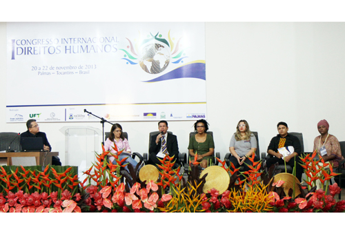 Por fim, os Direitos Humanos das populações minoritárias foi o tema do think thank que encerrou a programação da manhã. Em uma roda de conversa com pesquisadores e representantes de movimentos sociais ligados a temática, foram debatidos a efetividade e as violações dos direitos destes grupos minoritários, que como explicou o professor da UFT, Damião Rocha, “não são grupos que estão em menor número, e sim coletividades que sofrem processos de exclusão dentro as sociedade, tais como os negros, os indígenas, os imigrantes, as mulheres e a comunidade LGBT”. Participaram das discussões os professores: Tarsis Barreto, Damião Rocha, Aparecida Lopes, Káthia Nemeth e Bruna Irineu; e também a representante da comunidade quilombola do Tocantins, Celenita Gualberto e o representante da etnia indígena Karajá, Paulo André Karajá.