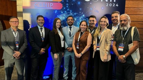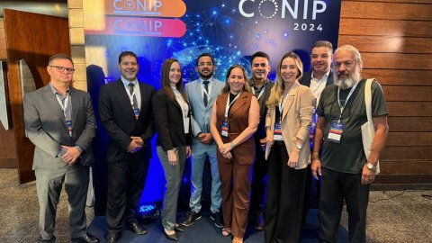 Participam do Conip 2024, ao lado da diretora de Tecnologia da Informação (Dtinf/TJTO), Alice Carla de Sousa Setubal; o chefe de Divisão de Desenvolvimento de Sistemas de Informação, Ângelo Stacciarino Seraphin; servidor membro da Equipe SICOR, Helivan Araújo Lopes; e os servidores: Ketlen Karolynny Pinheiro Cruz, Francielle Nogueira Braga, Manuela Almeida Bitencourt, Richard Capitanio.