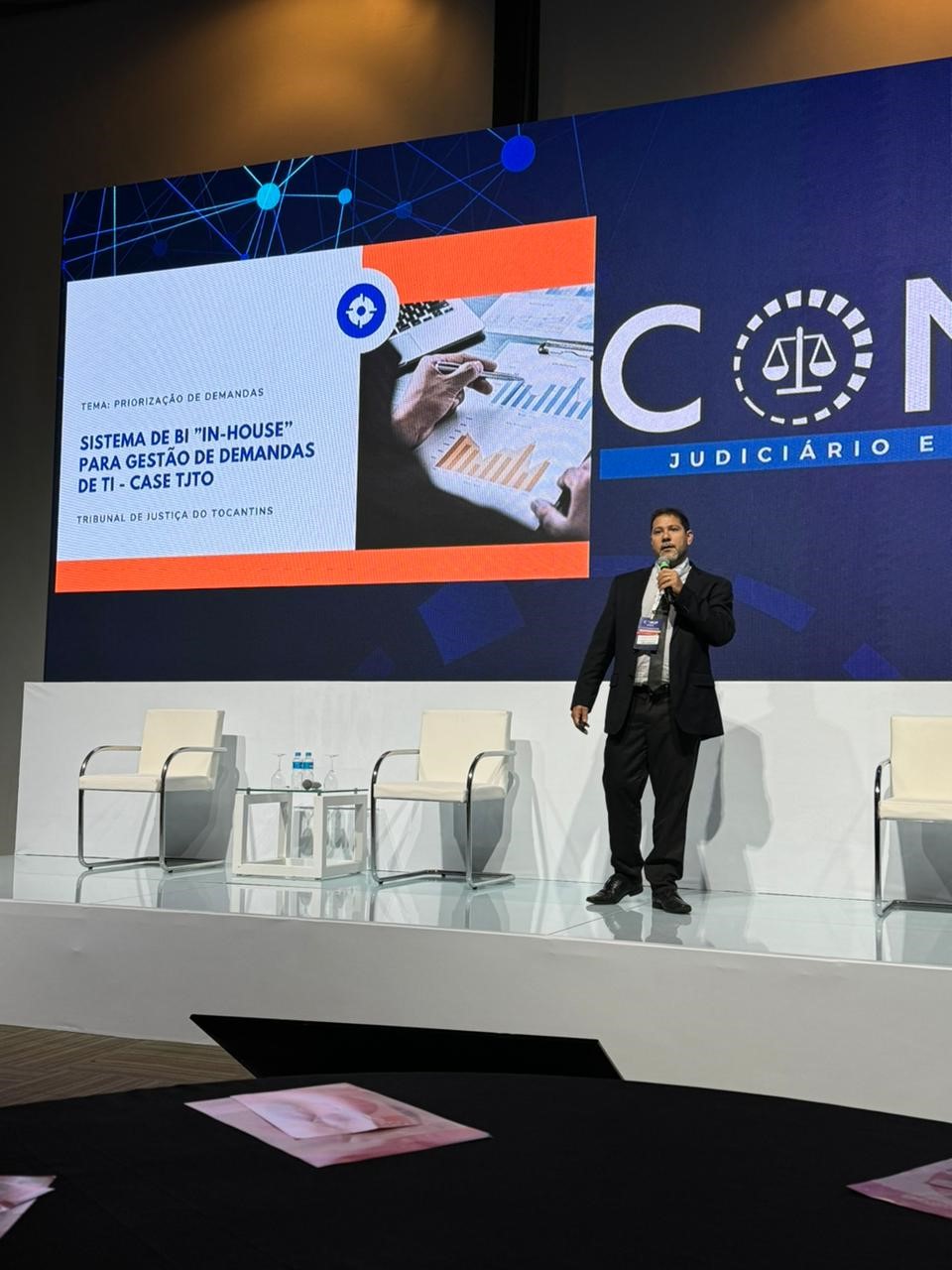 Durante o evento, Angelo Stacciarini Sheraphin, chefe da Divisão de Sistemas do TJTO, apresentou um sistema de Business Intelligence (BI), desenvolvido internamente pela equipe da Dtinf, que ajuda a gerir projetos de Tecnologia da Informação (TI).