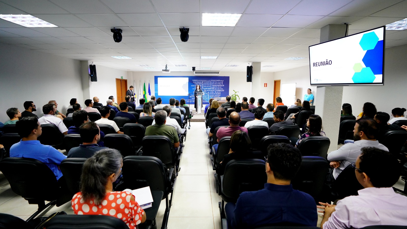 Ednan Cavalcanti Sala cheia de pessoas participando da reunião de planejamento sobre ações de TI para 2023-2025