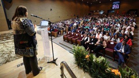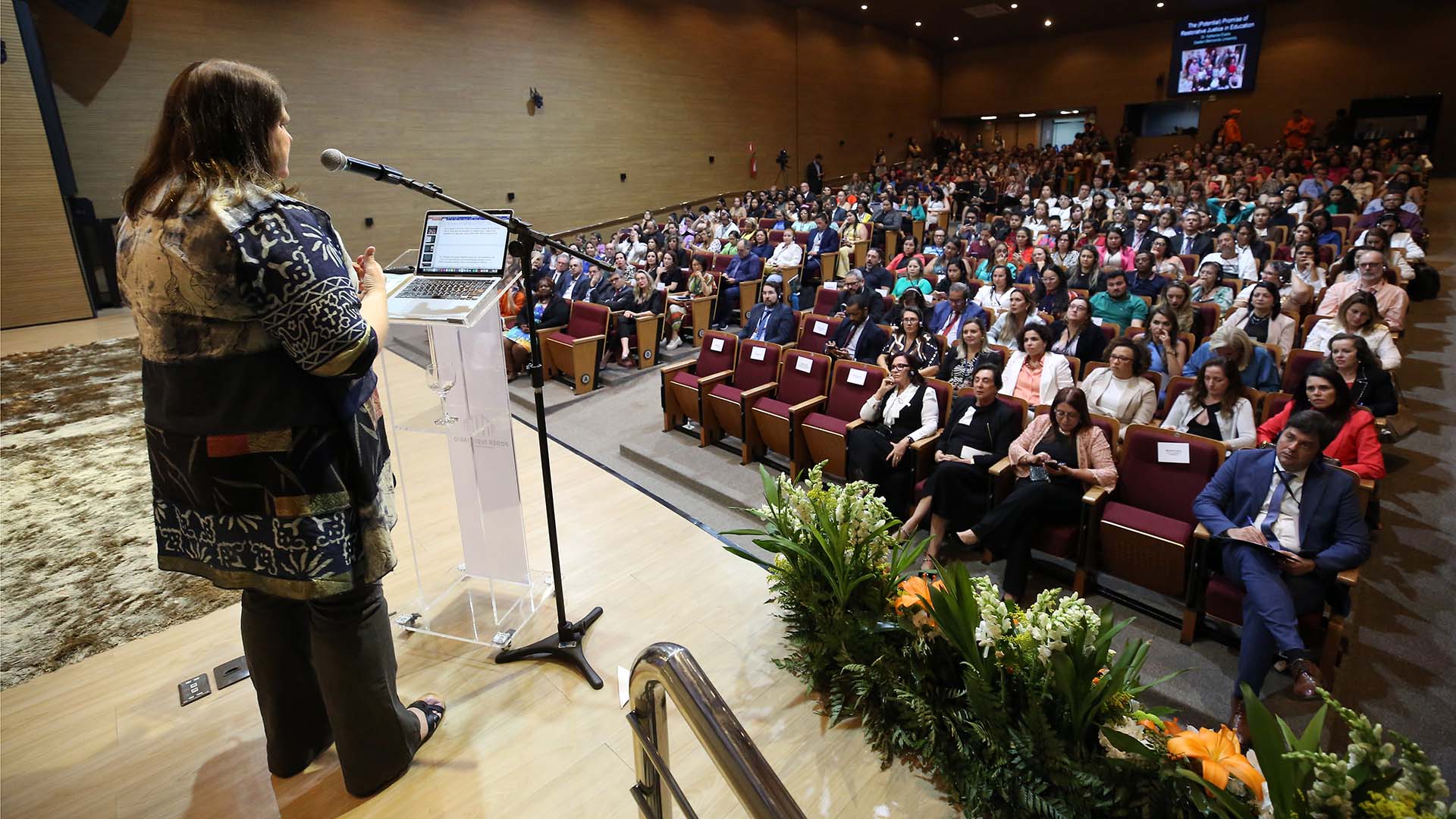 “A base fundamental da Justiça Restaurativa é o relacionamento”, disse a educadora e Ph.D. em psicologia educacional, Katherine Evans, durante a palestra “A potência da Justiça Restaurativa na Educação”, que abriu o 1º Encontro Nacional de Justiça Restaurativa na Educação, nesta quarta-feira (23/8), no auditório do Tribunal de Justiça do Tocantins (TJTO).