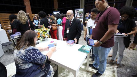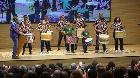 O primeiro dia do 1º Encontro Nacional de Justiça Restaurativa na Educação foi encerrado com a apresentação do grupo tocantinense, Tambores do Tocantins e com uma sessão de autógrafos da palestrante Katherine Evans.