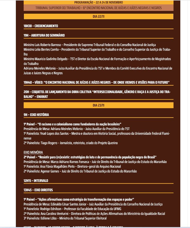 Em Brasília, magistrados tocantinenses participam do 6º Encontro Nacional de Juízas e Juízes Negros (Enajun)