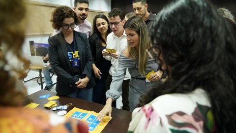 Dentro das ferramentas de inovação está a linguagem simples, trabalhada na gestão por meio do projeto SimplesTOC. Na ocasião, a cogestora do projeto, Roberta Maciel, falou sobre o programa e conduziu o jogo “simplifique” (criado pelo Aurora - Laboratório de Inovação do TJDF), que tornou o encontro mais leve e divertido.