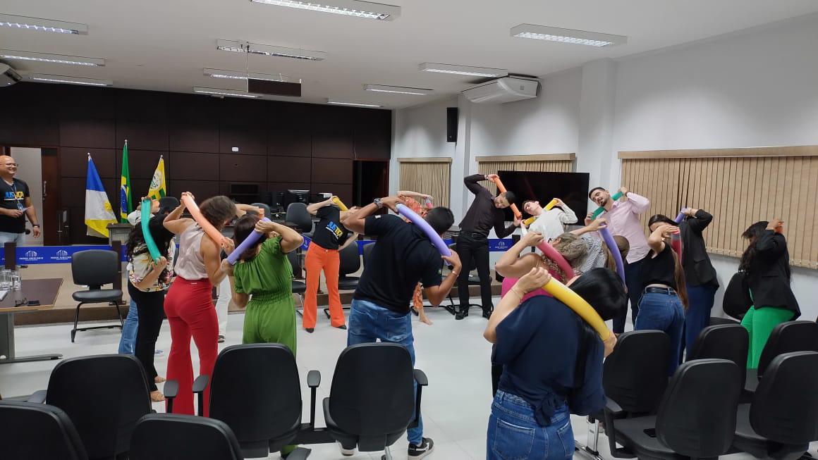 Depois do bate-papo com a presidente e de receberem informações sobre as ações da gestão, o encontro foi encerrado com momento de valorização e promoção da saúde e qualidade de vida dos servidores, com a prática de ginástica laboral, com a fisioterapeuta Hozana Lemos, do Centro de Saúde do TJTO. Em Miranorte, os exercícios são realizados duas vezes por semana, de forma contínua, com as fisioterapeutas credenciadas Jorgana Pereira e Ana Vitória Menezes.