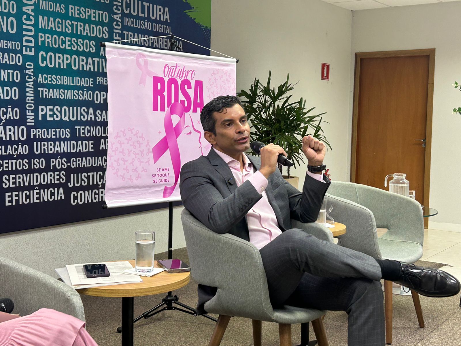 Na abertura da programação, a assistente social, Ana Paula Prado Peixoto Silva, informou que o evento representou a junção de dois grandes projetos do Cesau: o Saúde em Pauta e o Outubro Rosa. Na ocasião, ela falou um pouco sobre o Centro de Saúde do Tribunal de Justiça, unidade setorial vinculada à Diretoria de Gestão de Pessoas, composta por uma equipe de profissionais da área da saúde: médicos, fisioterapeutas, enfermeiros e assistentes sociais, todos preparados para atender aos (às) magistrados(as) e servidores(as) do Poder Judiciário do Tocantins.