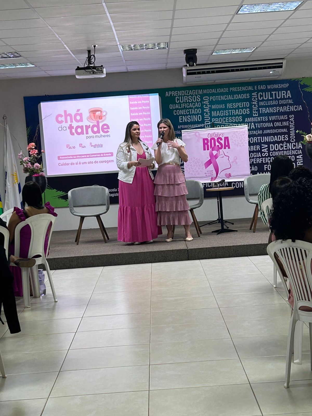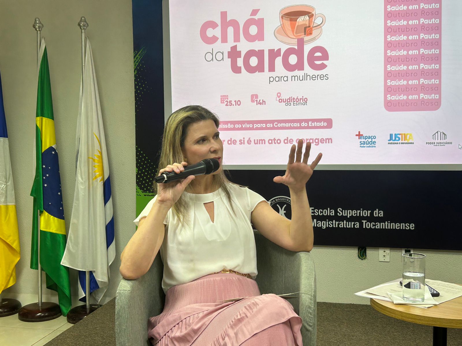 Numa tarde de interação e descontração, o Poder Judiciário do Tocantins, por meio do Centro de Saúde (Cesau/TJTO), em parceria com a Escola Superior da Magistratura Tocantinense, promoveu um chá para mulheres no auditório da Esmat.