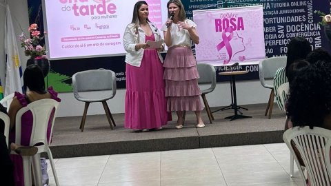 Na oportunidade, a médica Elaine Ferreira lembrou que o Outubro Rosa é um mês de alerta para o autocuidado. “Nós temos que aprender a olhar e escutar os sinais do nosso corpo, fazer o autoexame da mama, procurar o especialista, fazer a mamografia no tempo correto, fazer o exame papanicolau para prevenção de câncer de colo de útero”, orientou ela, ressaltando a necessidade também do “cuidado com a alimentação, da prática de atividade física, qualidade do sono, amenizar o estresse e ser feliz.”