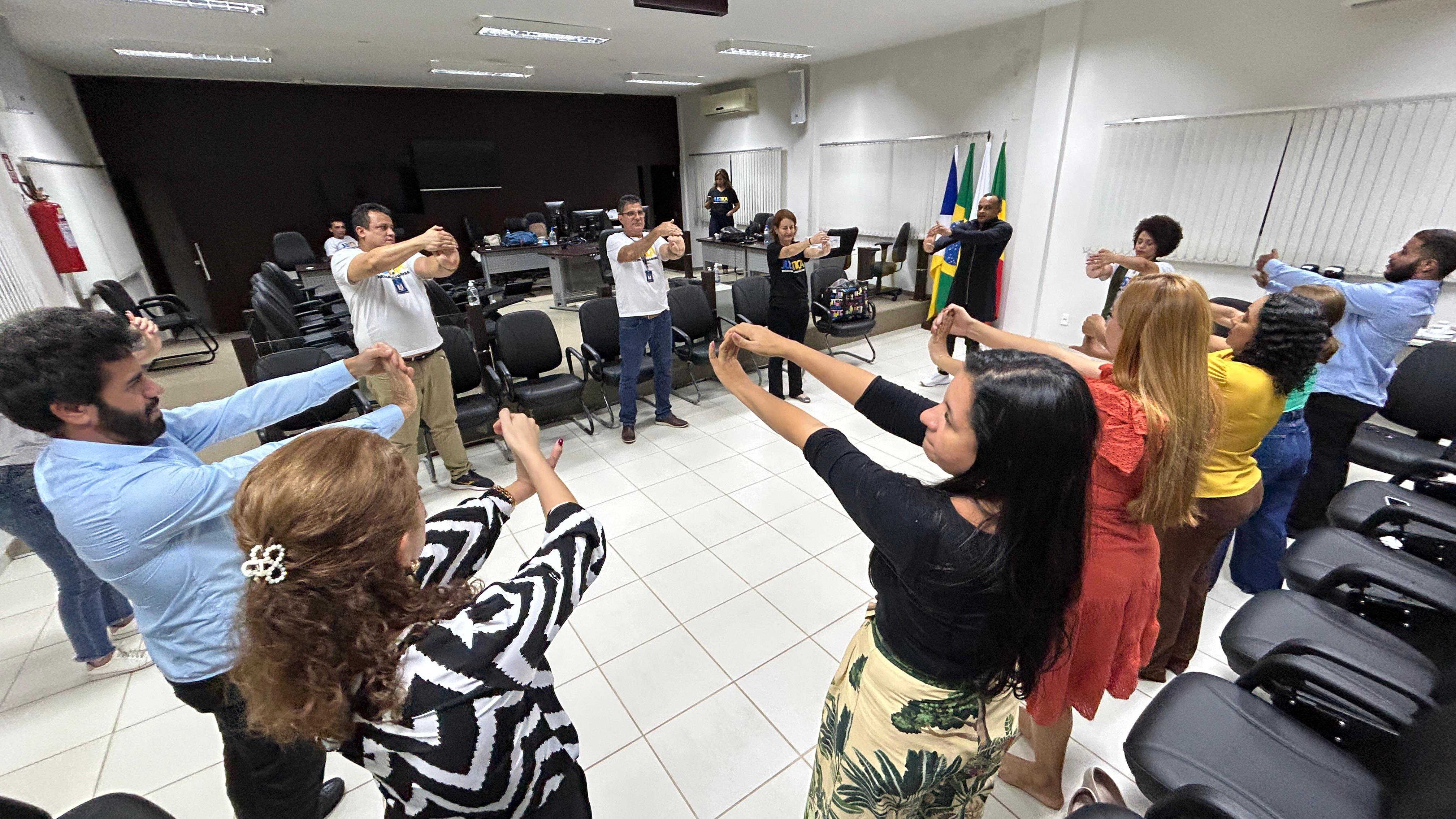 Durante a visita, os(as) servidores(as) tiveram informações sobre comunicação e segurança institucional, tiveram a oportunidade de saber sobre o Centro de Inovação Inovassol e o programa SimplesToc, este criado em 2023, para simplificação da linguagem no Judiciário. Tiraram dúvidas sobre cessão, férias, implementação da URV, participaram do Jogo da Linguagem Simples desenvolvido pelo Aurora - Laboratório de Inovação do Tribunal de Justiça do Distrito Federal (TJDF) e tiveram um momento de ginástica laboral.