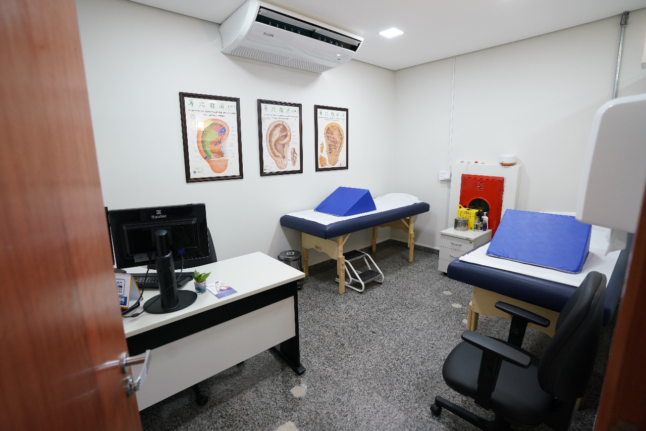 O novo ambiente do Centro de Saúde do Poder Judiciário (Cesau/TJTO) conta com sala de espera e acolhimento, salas para atendimento de reflexologia podal, acupuntura, auriculoterapia, cromoterapia e Dry Needling (tratamento para dor miofascial); fisioterapia ortopédica, ventosaterapia e microfisioterapia.