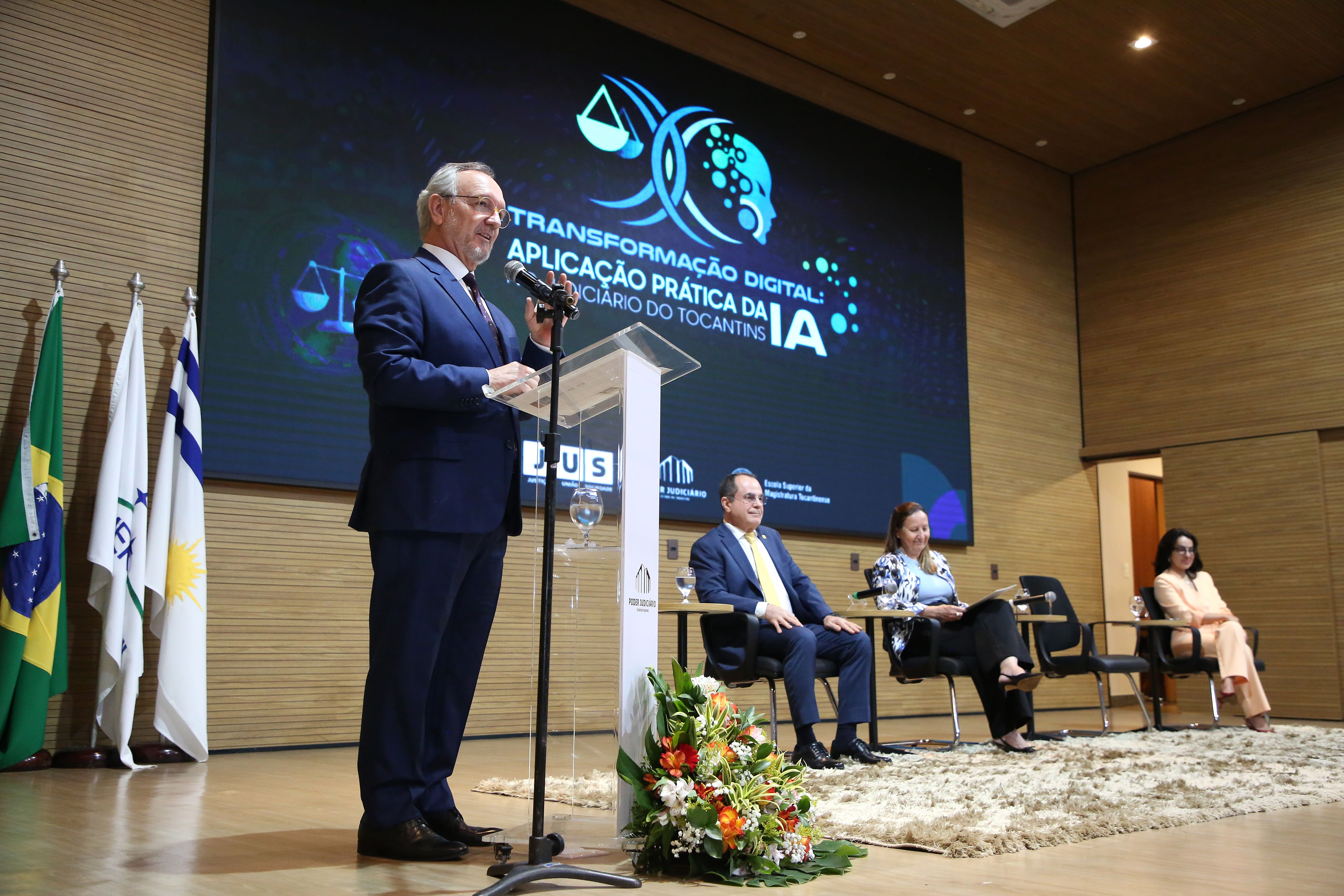Na solenidade, o diretor geral da Escola Superior da Magistratura Tocantinense (Esmat) e presidente do Colégio Permanente de Diretores de Escolas Estaduais da Magistratura (Copedem), desembargador Marco Villas Boas, anunciou o novo MBA em Inteligência Artificial Aplicada ao Poder Judiciário, iniciativa voltada à qualificação de magistrados(as) e de servidores(as) para atuação nesse novo cenário.