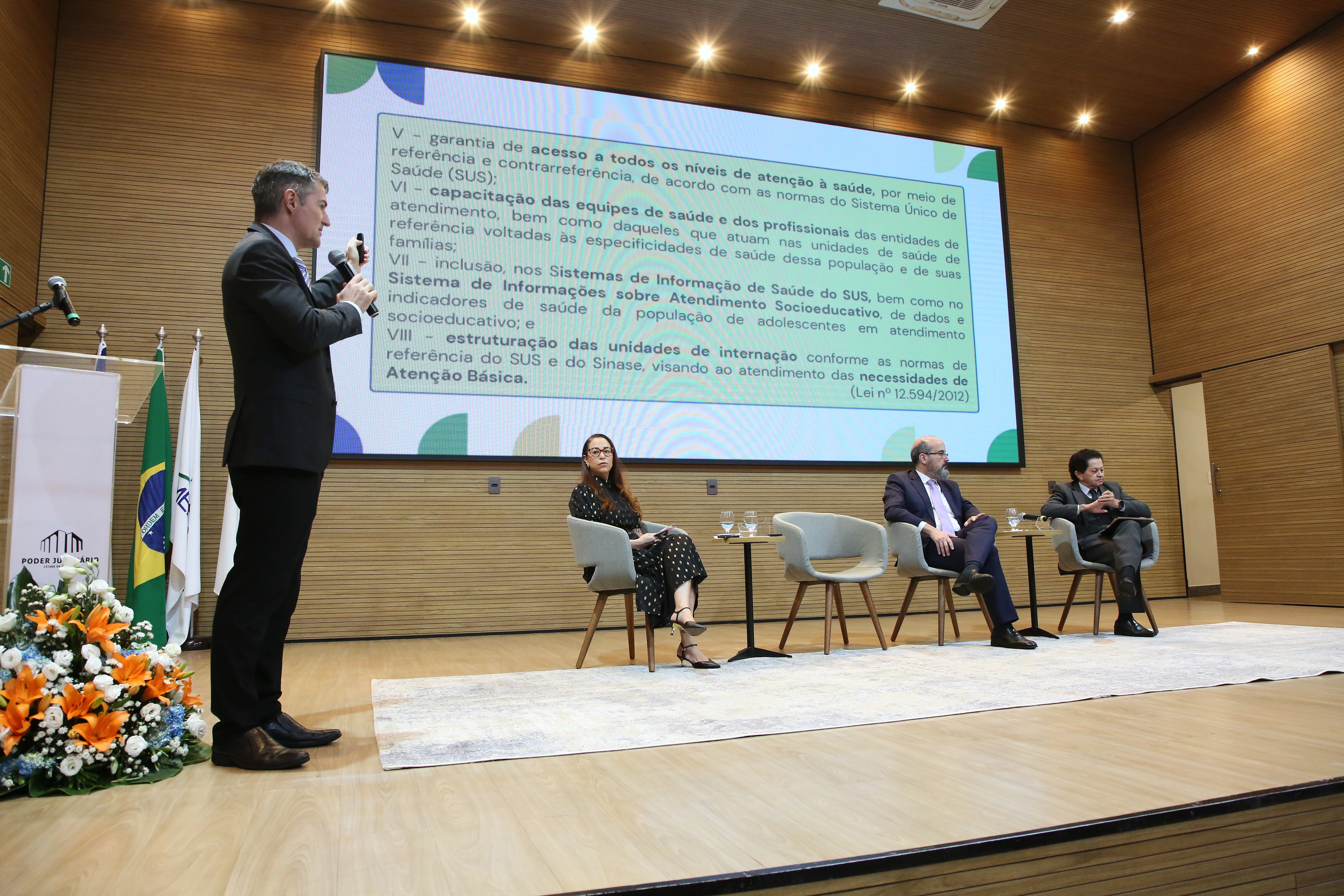 O promotor de Justiça Sidney Fiore Júnior, do Centro de Apoio Operacional da Infância, Juventude e Educação (CAOPIJE/MPTO), apresentou a legislação que ampara o direito à saúde mental de adolescentes em cumprimento de medidas socioeducativas. Destacou a Política Nacional de Atenção Integral à Saúde de Adolescentes em Conflito com a Lei (PNAISARI), instituída pela Portaria nº 1.932/2014, e defendeu a atuação articulada entre as redes de saúde, educação e assistência social. “A privação de liberdade não pode significar a privação de saúde”, enfatizou.