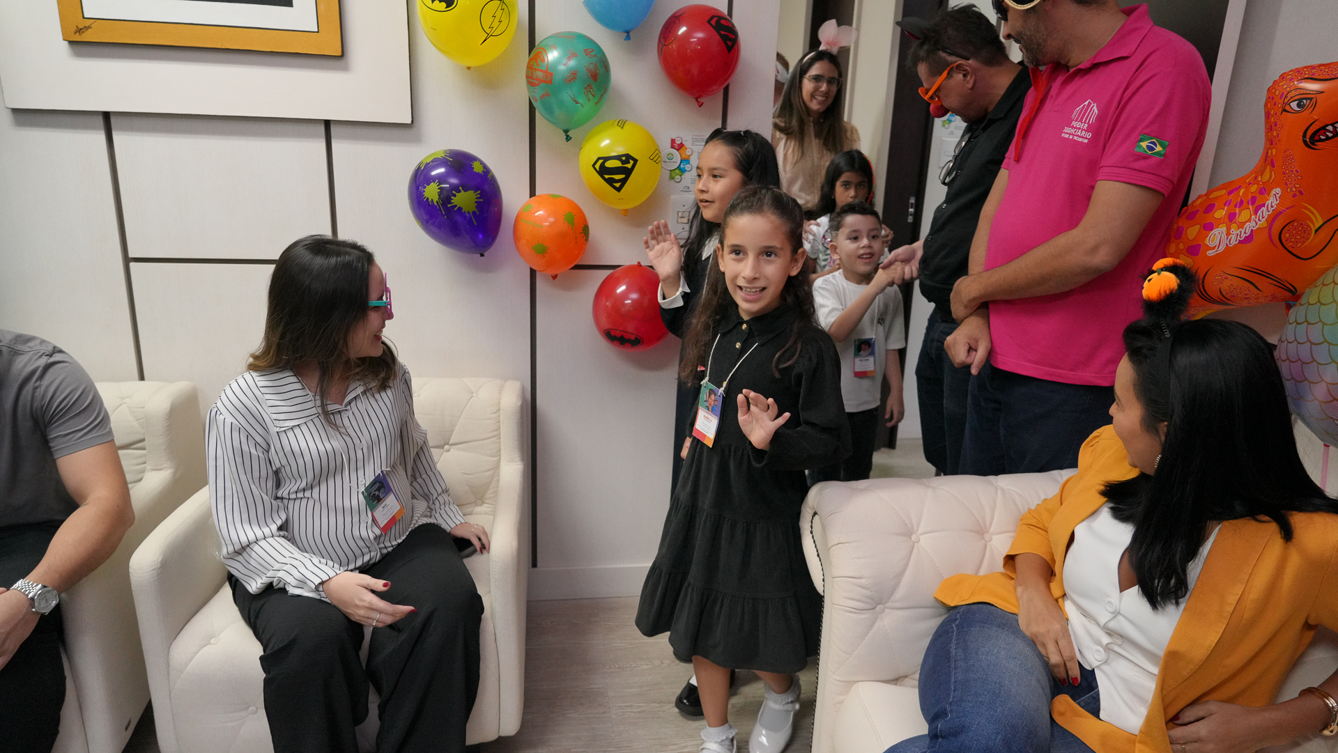 Homem de Ferro, princesa, Batman, Mulher-Gato e até o Naruto deram o tom de alegria, na tarde desta quinta-feira (9/10), no gabinete do juiz convocado Márcio Barcelos, do Tribunal de Justiça do Tocantins (TJTO). Por trás das fantasias, estavam os(as) próprios(as) servidores(as), papais e mamães que receberam seus(as) filhos(as) para uma visita especial. A iniciativa teve como objetivo aproximar os(as) pequenos(as) da rotina de trabalho dos pais, em comemoração ao Dia das Crianças, celebrado neste domingo (12/10).