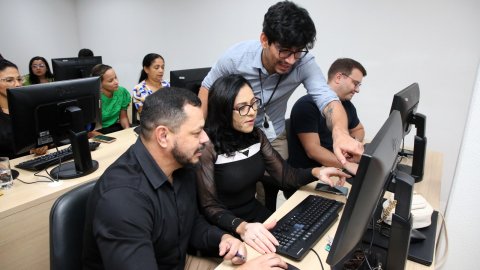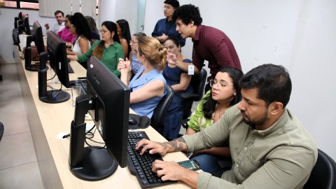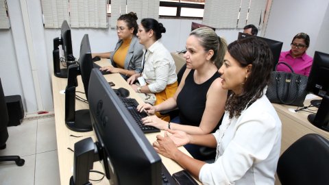Os laboratórios da Escola Superior da Magistratura Tocantinense (Esmat) receberam, nesta quinta-feira (4/4), a primeira turma de servidores(as) do Tribunal de Justiça do Estado do Tocantins (TJTO) para a Oficina de Dimensionamento da Força de Trabalho (DFTs).
