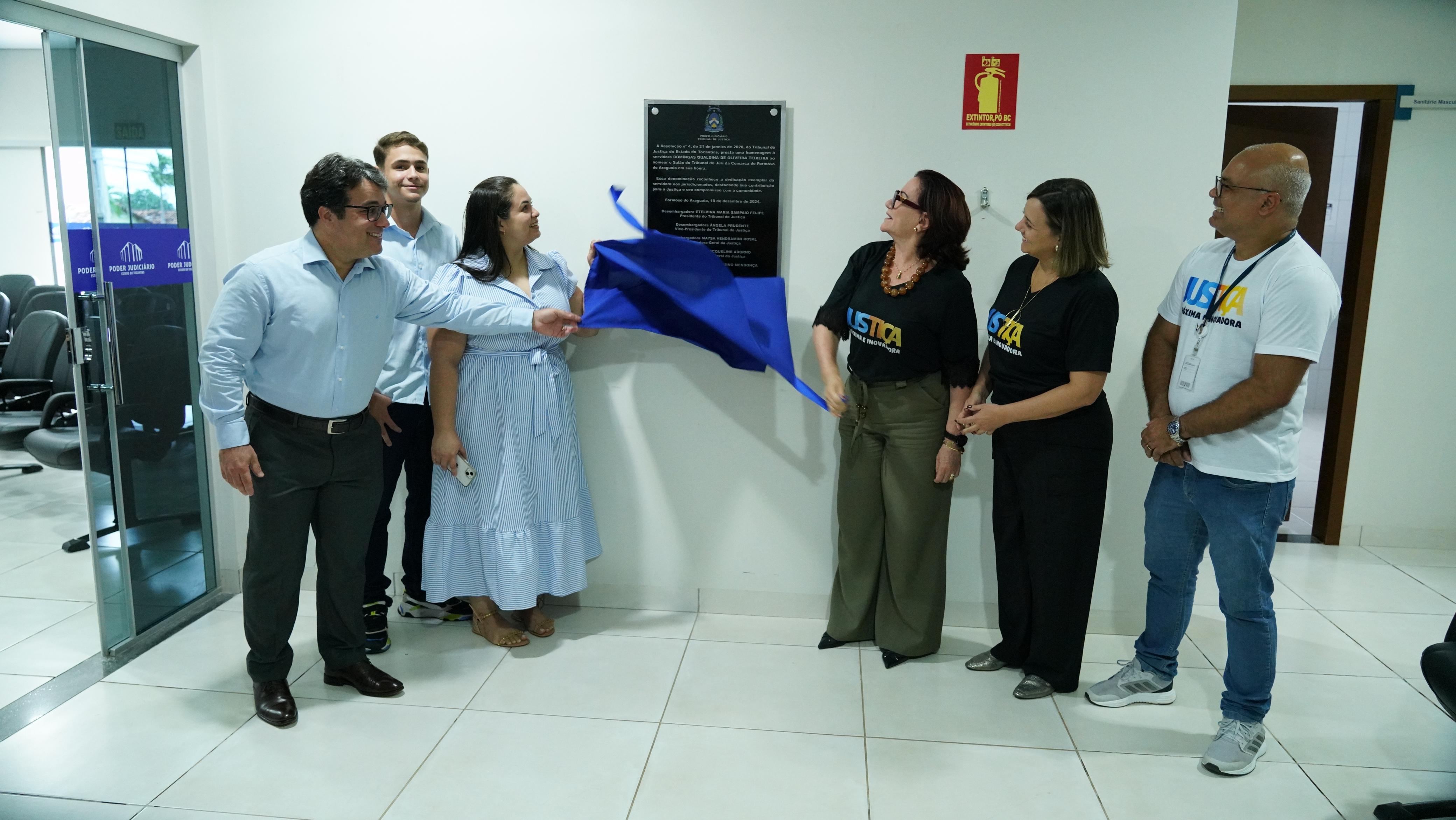 A partir de agora, o Salão do Tribunal do Júri da Comarca de Formoso do Araguaia recebe o nome da servidora Domingas Gualdina de Oliveira Teixeira, que faleceu em 2018. Ela trabalhou por 25 anos no Judiciário e mesmo estando de licença médica, ia sempre ao Fórum para trabalhar como voluntária. O processo administrativo partiu do magistrado da época, com o apoio de servidores(as), prestadores(as) de serviços da empresa terceirizada e advogados(as) atuantes na unidade judicial.