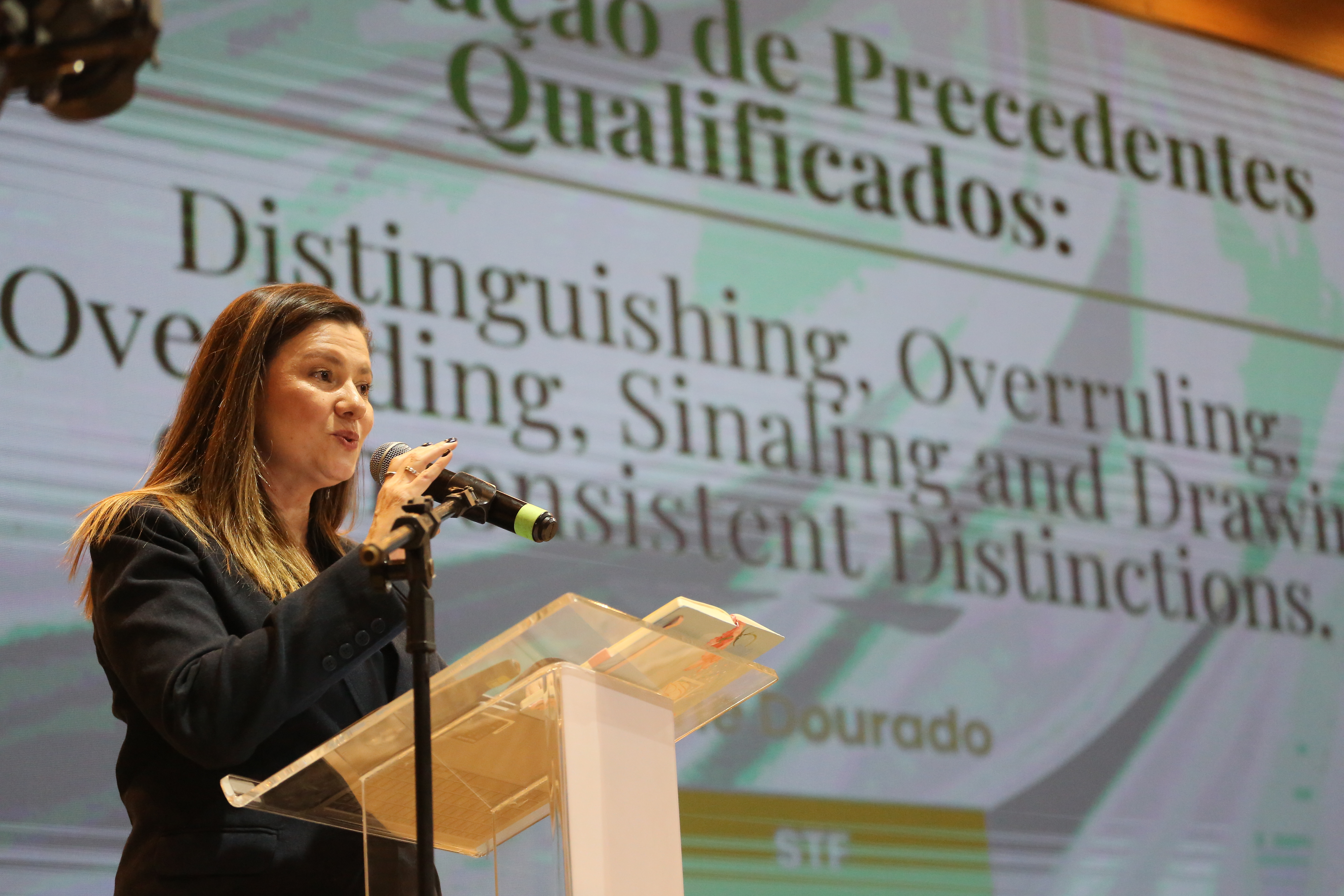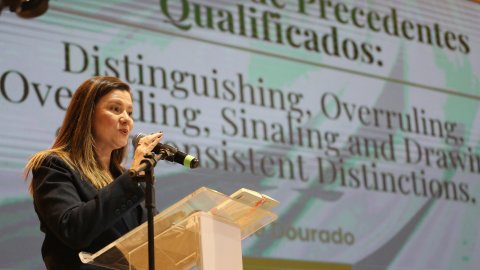 Ao discorrer sobre revisão, cancelamento e superação efetiva dos precedentes, a assessora mostrou um panorama sobre questões teóricas, interações online e exemplos práticos do STF na superação de julgados consolidados. Ao expor o cenário brasileiro dos precedentes, citou, do Supremo, cerca de 1.411 temas de repercussão geral, 7.804 ADIs (Ações Diretas de Inconstitucionalidade), 1.363 temas repetitivos no Superior Tribunal de Justiça, além de 21 IACs (Incidentes de Assunção de Competência), 154 IRRs (Incidentes de Recursos Repetitivos) no TST, além de 5 IRDRs (Incidentes de Resolução de Demandas Repetitivas) e 9 IACs no Tribunal de Justiça do Tocantins.