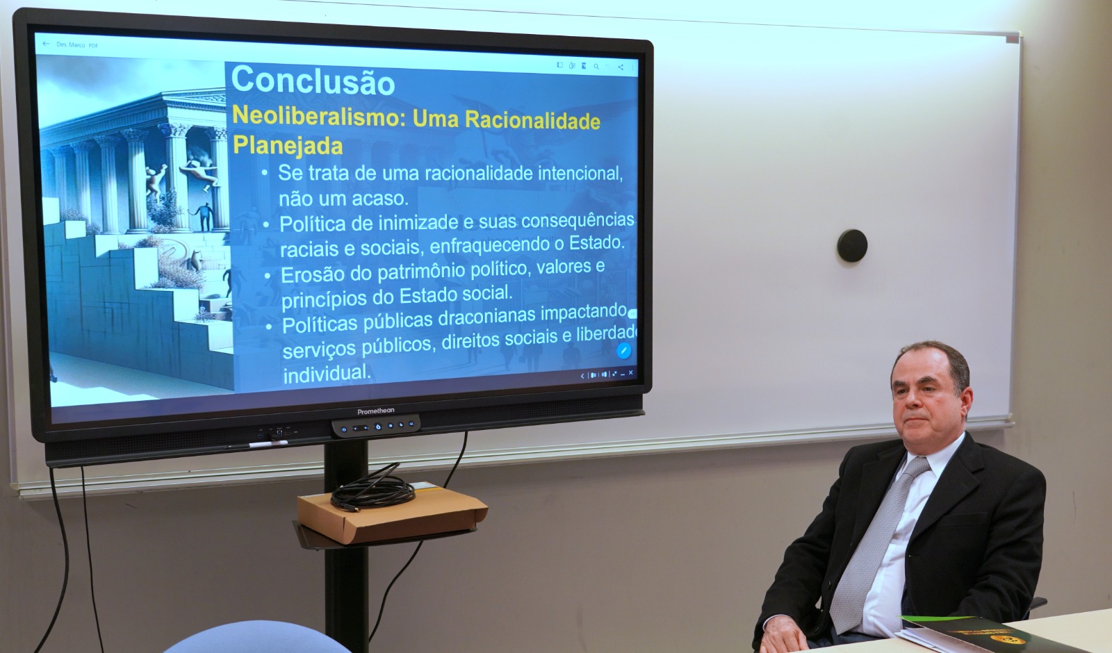 Segundo o desembargador, o Estado contemporâneo pode ser compreendido como um "estado ecológico", especialmente diante dos desafios atuais de escassez de recursos e mudanças climáticas. “Existem outras dimensões da autodeterminação que corroboram a existência do estado atual, uma delas é a necessidade de existência de recursos/fontes naturais para que a sociedade possa se manter (...). Eu penso que o Estado contemporâneo é um Estado ecológico, não foge disso, o que estamos vivendo agora, uma escassez de recursos e de mudanças climáticas”, explicou.