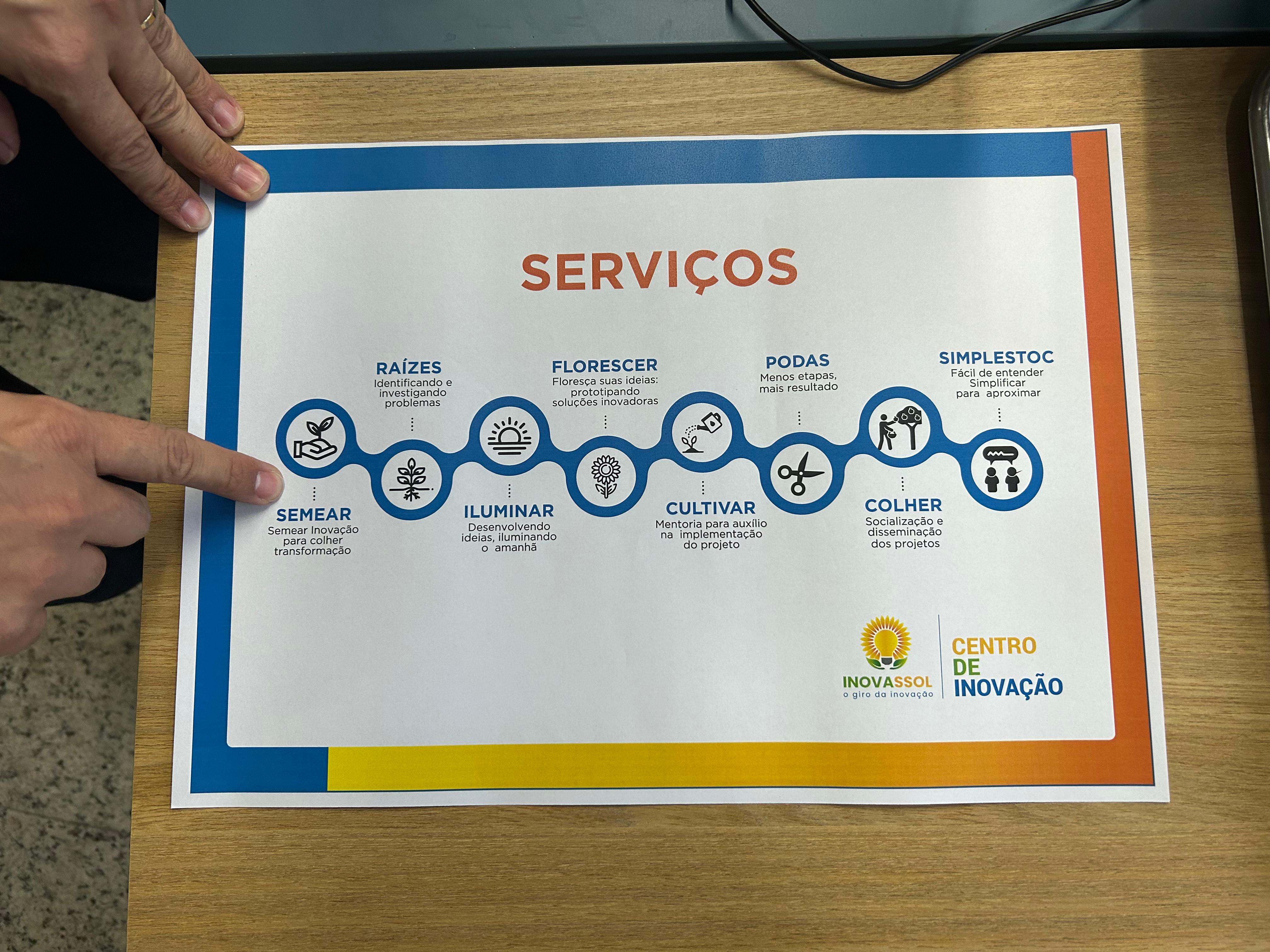 A Oficina Raízes é a primeira etapa dos serviços de inovação do Inovassol. A primeira fase, chamada raízes, visa investigar e identificar o problema para desenvolver as ideias necessárias e suprir as demandas. Nessa etapa, foram utilizadas duas ferramentas da metodologia Design Thinking: a primeira chamada Espinha de Peixe, que provoca os envolvidos a discutir o problema, dividindo-o em quatro partes: a infraestrutura, processos, pessoas e regras.