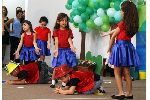 As apresentações envolveram todas as turmas do CEI, crianças entre dois e seis anos, que encantaram os pais e demais presentes. As culturas indígenas e africanas foram homenageadas. Fantasiados de peixinhos, a turminha do maternal I falou da amizade, fundamental na inclusão social. O respeito aos idosos também foi tema, lembrando da sabedoria das vovós.