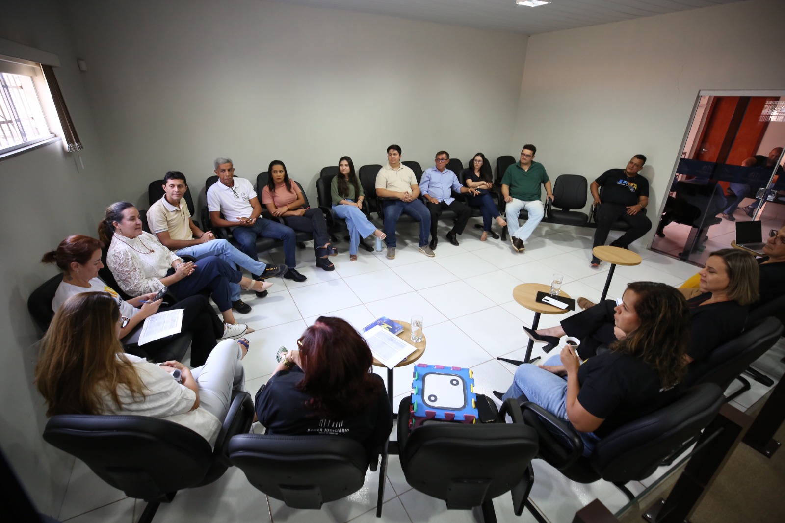 Inspirado nos princípios da Justiça Restaurativa, o encontro aconteceu em um grande círculo no salão do Júri, onde representantes do primeiro e segundo grau dialogaram de forma horizontal, recordando a história da Comarca, desde a instalação na década de 1990, às melhorias ao longo do tempo e as dificuldades no dia a dia.