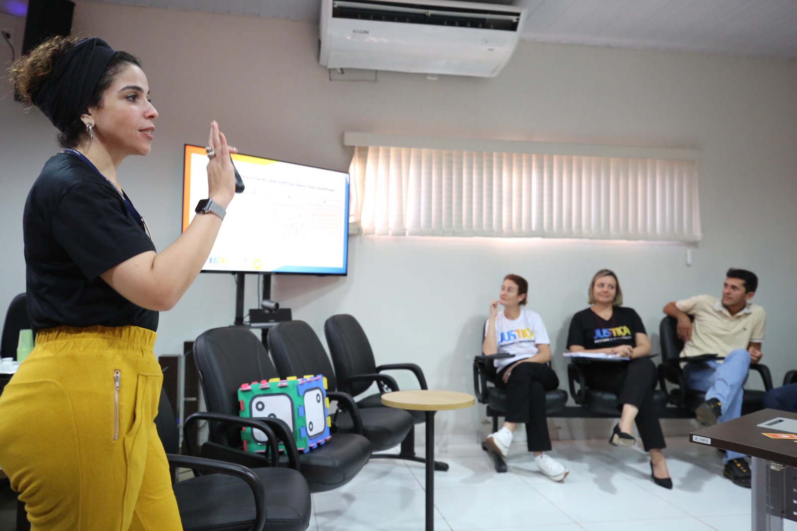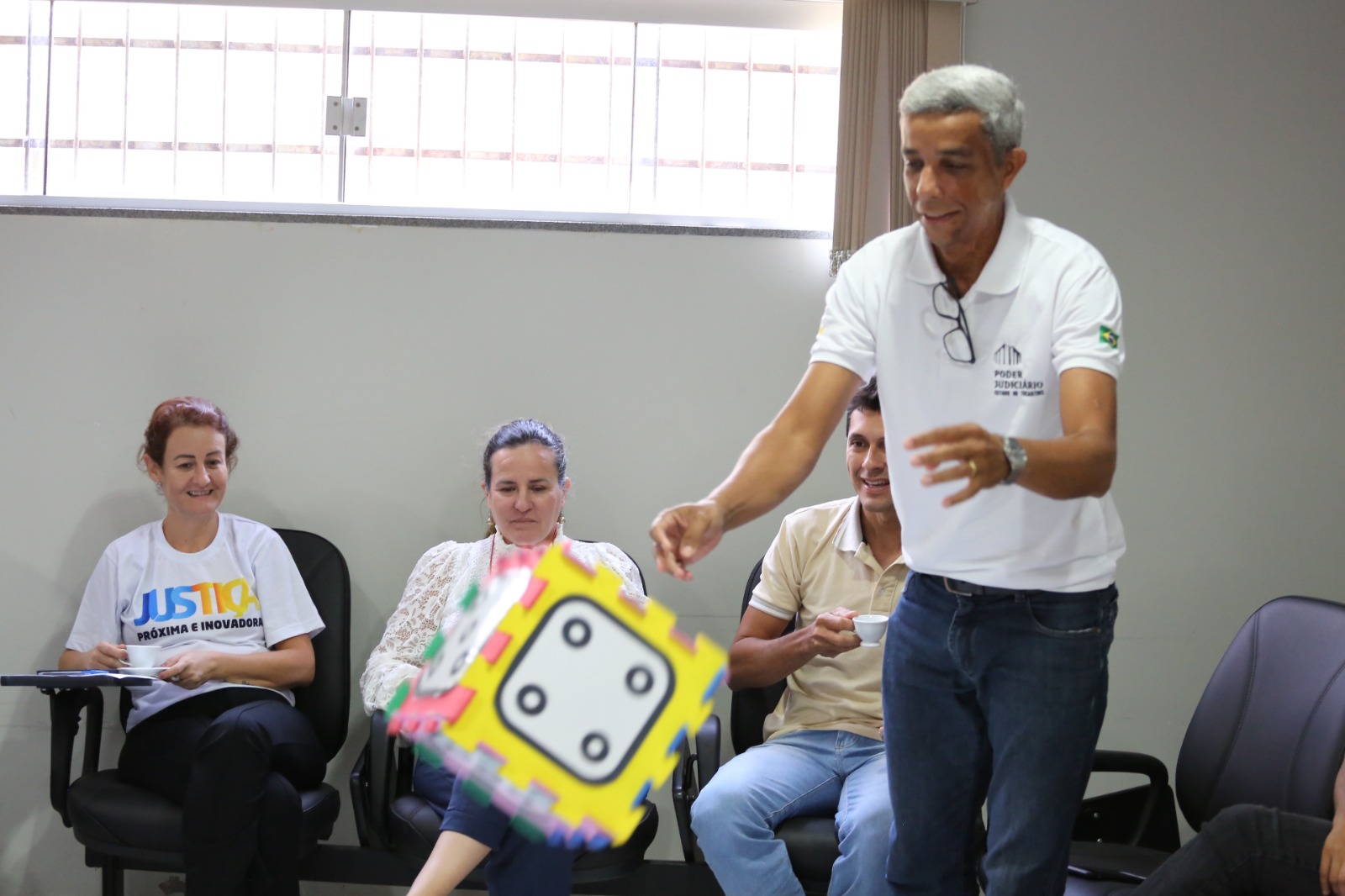 A tarde ainda incluiu a exibição de um vídeo institucional de apresentação do Inovassol - Centro de Inovação do TJTO. E de forma lúdica e descontraída, a coordenadora de assessoramento jurídico da diretoria-geral do TJTO, Roberta Soares Maciel Ismael, apresentou à equipe de Itacajá o SimplesTOC - Programa de Linguagem Simples do Judiciário tocantinense. Juntos, fizeram a dinâmica do Jogo da Linguagem Simples, ressaltando a importância da tradução de conteúdo jurídico acessível à compreensão da população atendida. O diretor judiciário Wallson Brito também tirou dúvidas dos servidores sobre a operacionalização do Eproc, incluindo as atualizações e melhorias do sistema, como a implementação gradativa dos mecanismos de inteligência artificial no auxílio do detalhamento e classificação processual dentro do sistema.
