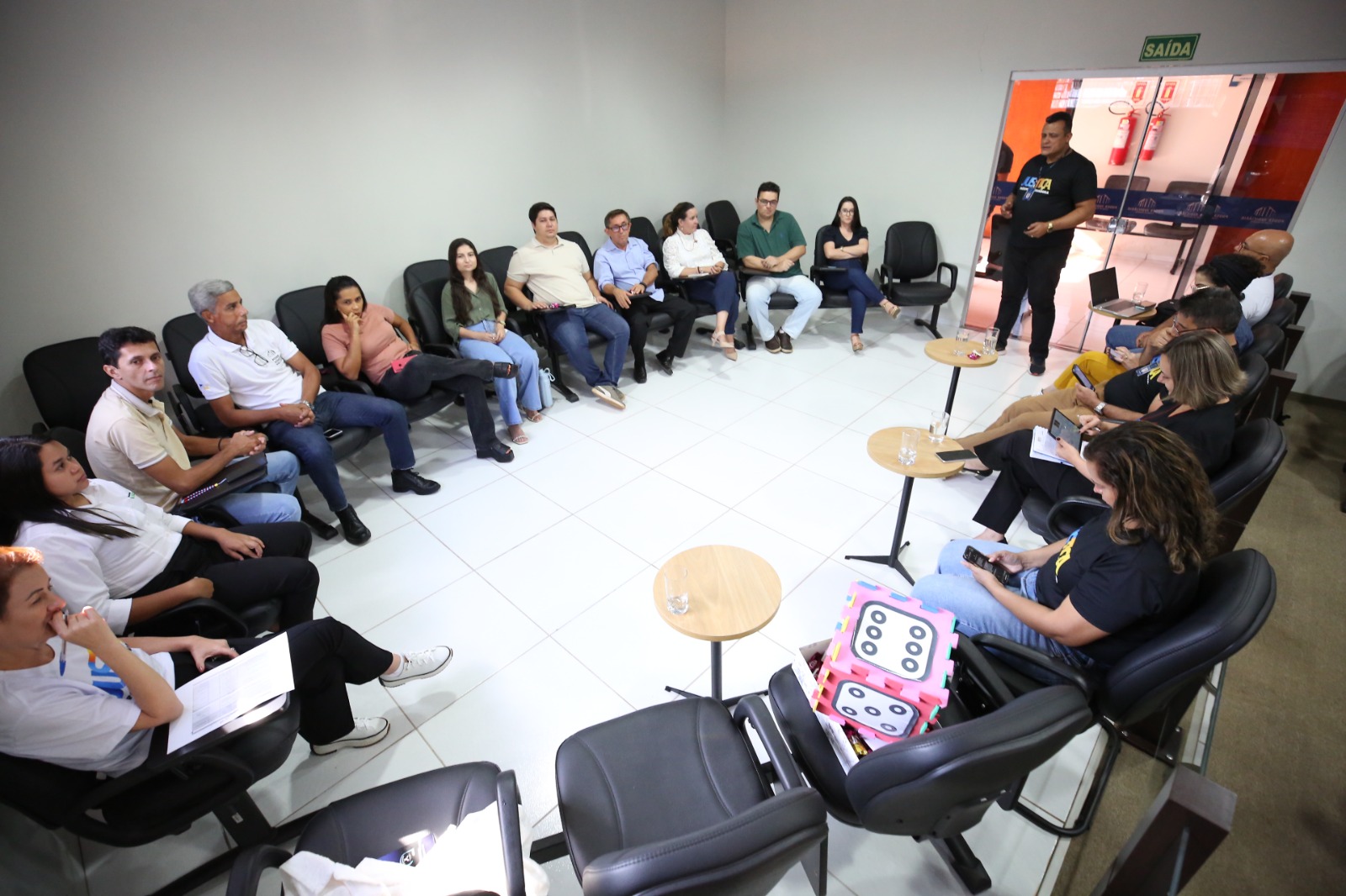 Para finalizar a visita, Cibele Araújo - fisioterapeuta credenciada pelo Grupo Gestor de Equipes Multidisciplinares (Ggem) lotada na comarca de Itacajá, junto à Hozana Lemos, fisioterapeuta do Centro de Saúde do TJTO, conduziram uma sessão de alongamento em ginástica laboral, orientando os participantes sobre a contribuição dos exercícios para uma rotina mais produtiva e sem desconforto.