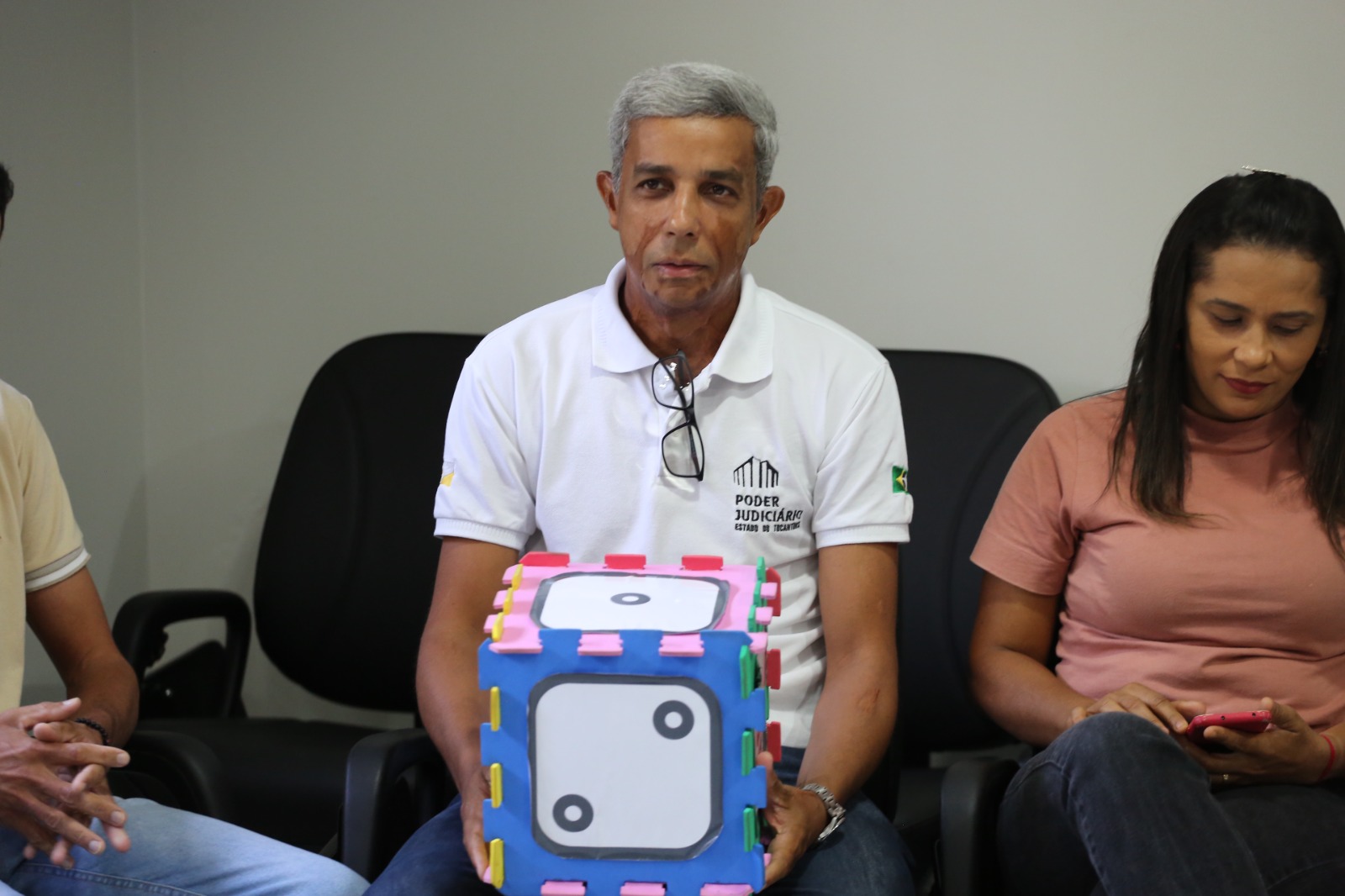 Também integraram a comitiva: a juíza auxiliar da presidência do TJTO, Rosa Maria Rodrigues Gazire Rossi; a diretora geral, Ana Carina Mendes Souto; o diretor judiciário Wallson Brito da Silva, a diretora de gestão de pessoas, Márcia Mesquita; a diretora do centro de comunicação, Kézia Reis; o chefe da assessoria militar, coronel Jaizon Veras Barbosa, acompanhado pelo assessor militar adjunto, tenente coronel Ricardo Apolinário, e pela coordenadora de gestão de pessoas da assessoria militar, tenente coronel Hilma Costa; a coordenadora de assessoramento jurídico da Diretoria-Geral, Roberta Soares Maciel Ismael; e a fisioterapeuta do centro de saúde, Hozana Lemos.