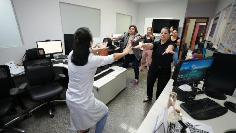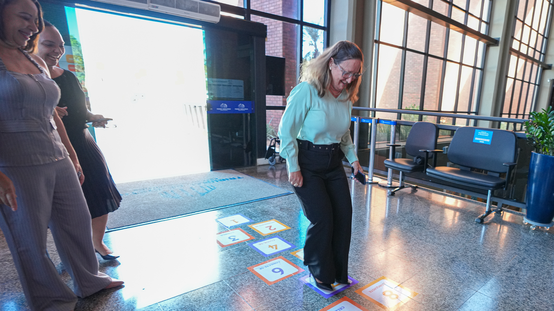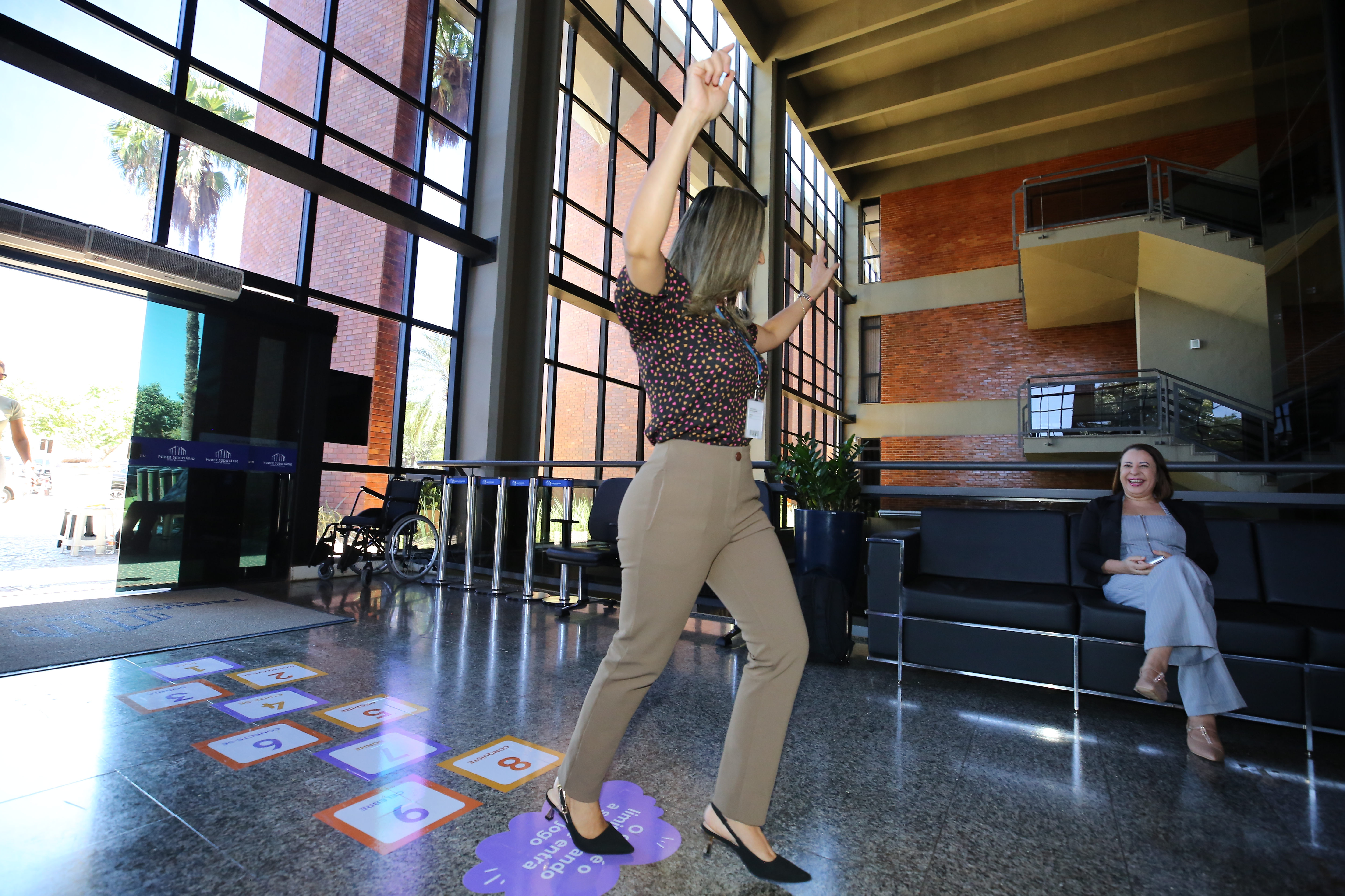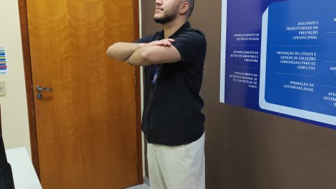 Nesta quarta-feira (28/5), o ritmo do Judiciário do Tocantins foi diferente. Logo cedo, o subsolo se transformou em estúdio de Mat Pilates; o hall de entrada do Tribunal de Justiça do Tocantins virou cenário para amarelinha; por todo canto, a ginástica laboral tomou conta das salas das unidades judiciárias e comarcas e, ao final do dia, o tapetinho de yoga foi estendido para a prática do exercício.