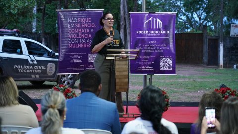 À frente da Coordenadoria Estadual da Mulher em Situação de Violência Familiar, a juíza Cirlene Maria de Assis destacou que o Tribunal de Justiça do Tocantins (TJTO) está na vanguarda no que diz respeito à Lei 14.942, que prevê o Projeto Banco Vermelho e ações de conscientização em lugares públicos. “A lei foi publicada em julho e quando foi no início de agosto nós já instalamos o primeiro banco, então nós somos um dos tribunais que está mais avançado nessa campanha, talvez o que já instalou mais bancos pelo país. O banco é gigante dessa forma porque ele representa a grandeza da nossa campanha. Em todo o mundo, 149 mulheres são assassinadas por dia. O Tocantins está em quarto lugar em número de violência doméstica. Infelizmente a gente está aí no topo deste ranking tão trágico”.