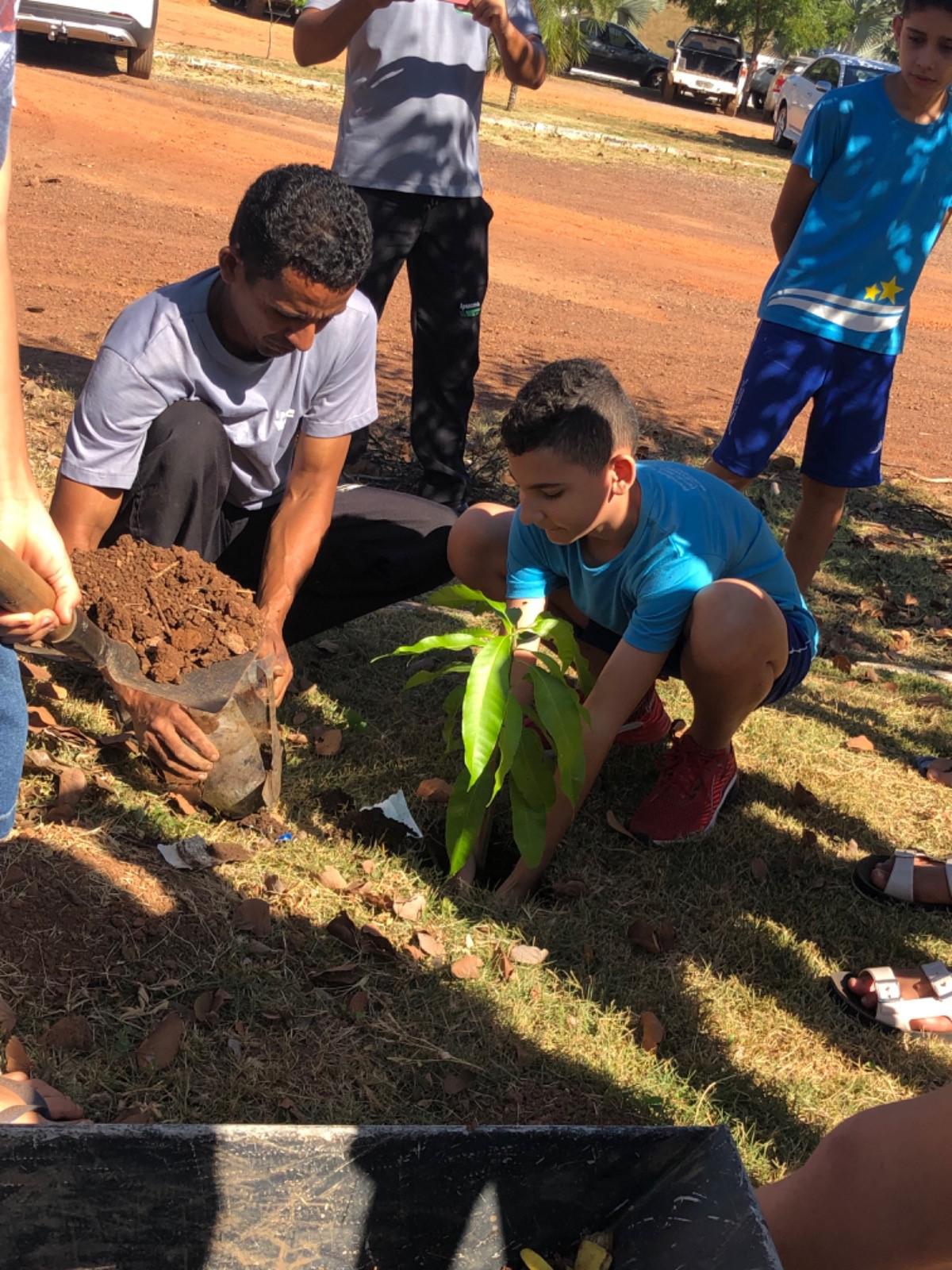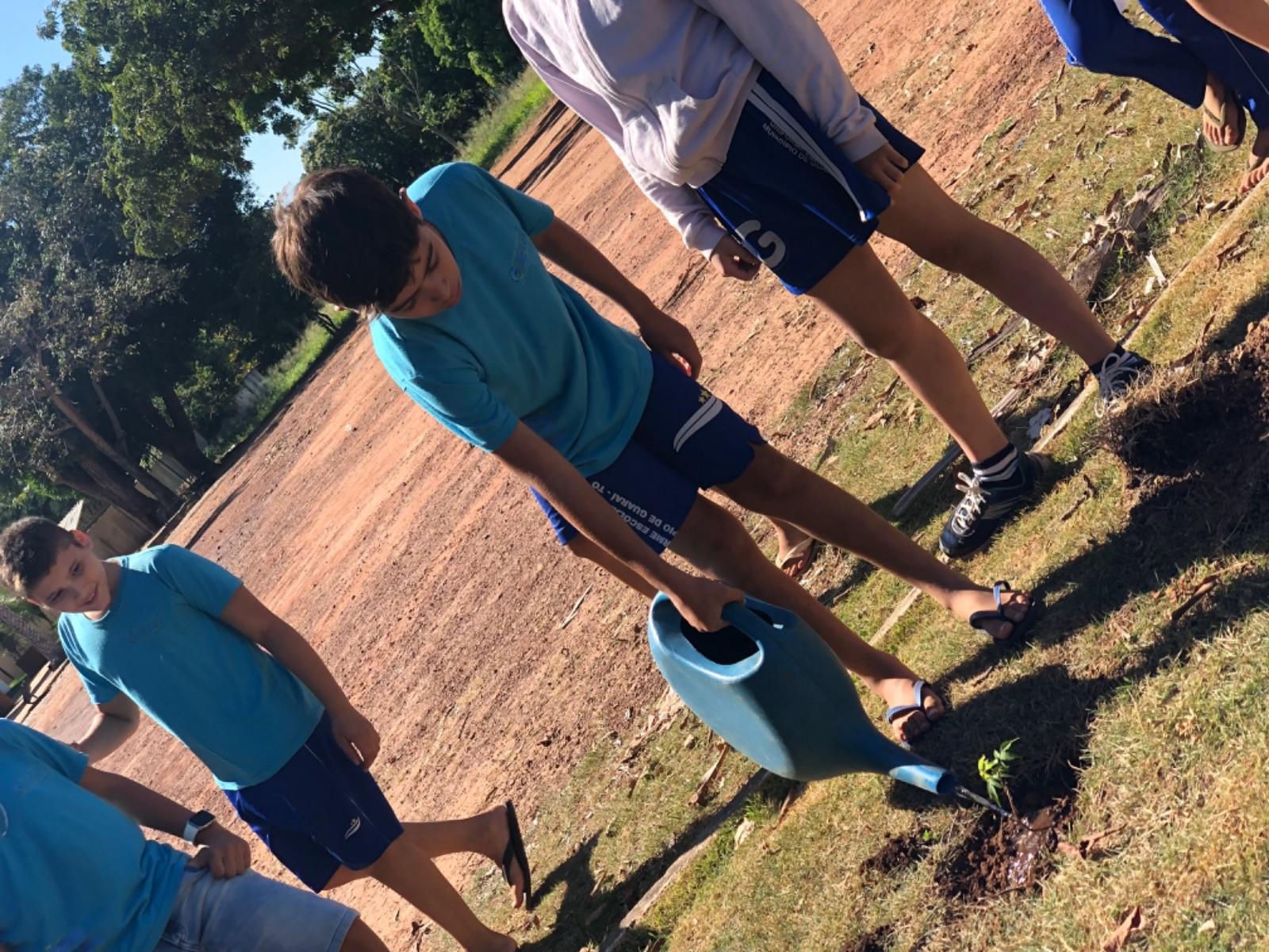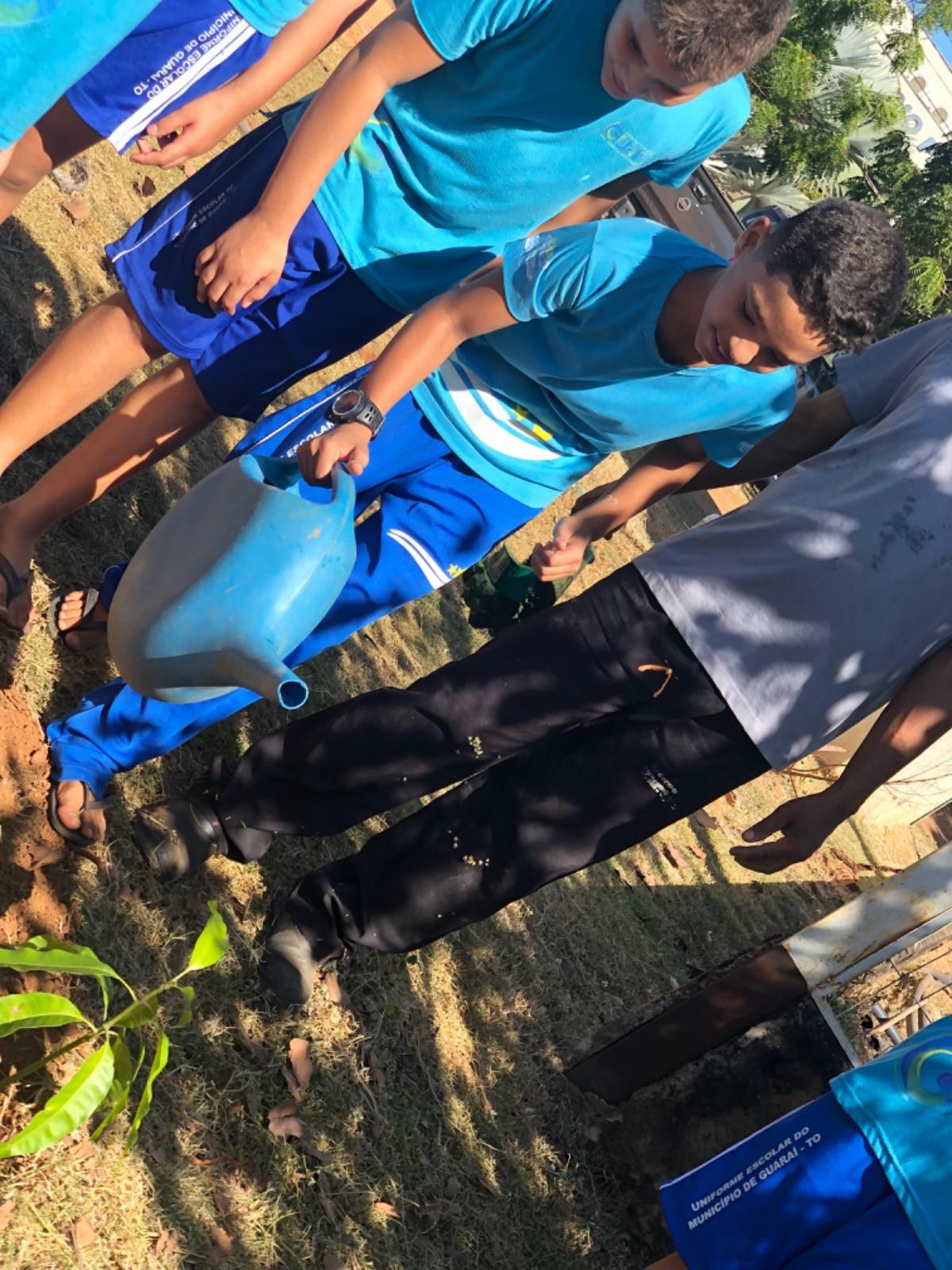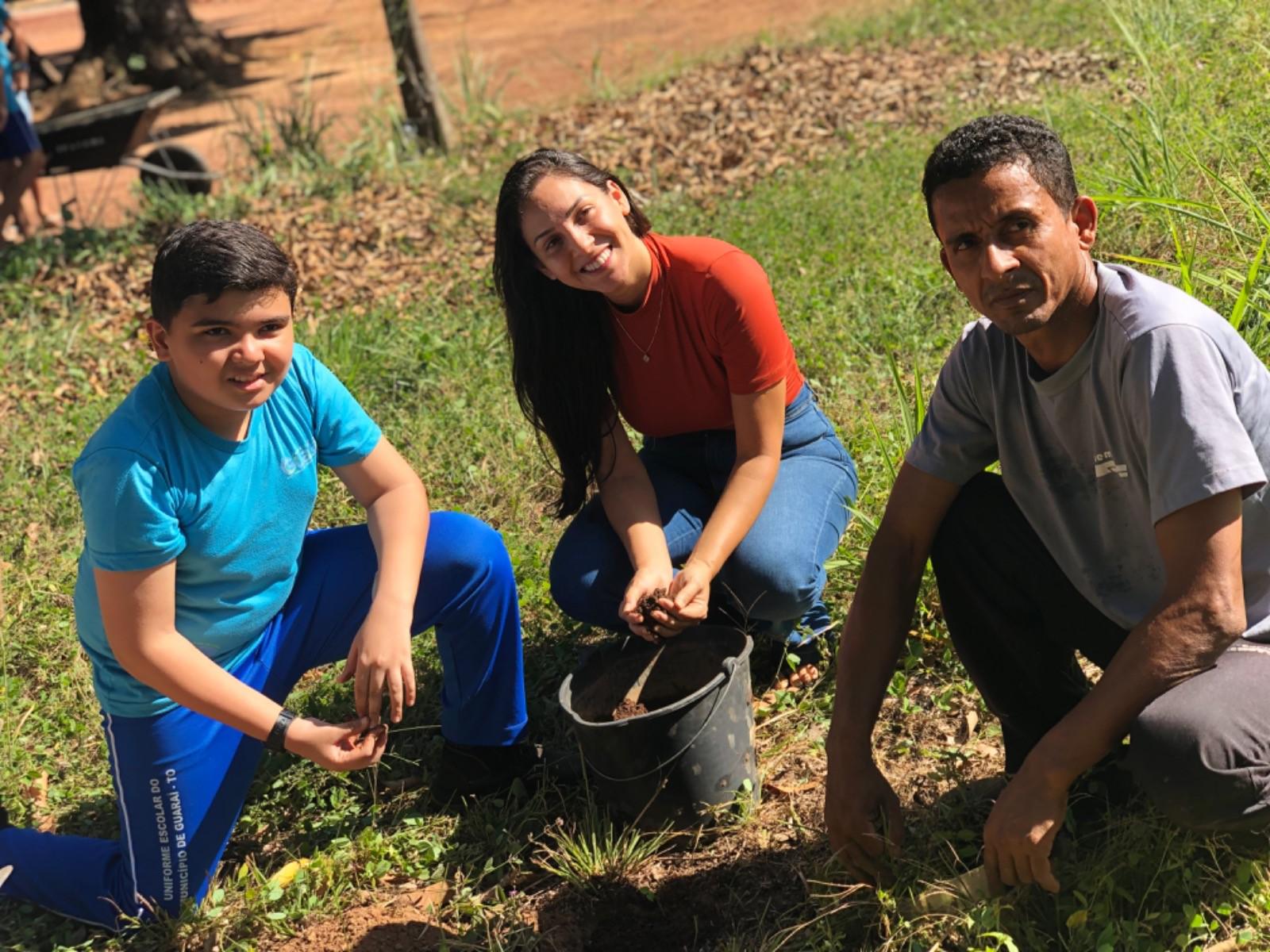 Dentro da programação de atividades do projeto EducaJus - De papo com a Justiça, na quarta-feira (7/6), alunos do 9º ano da Escola Municipal Núcleo Euclides da Cunha, situada na região Beira do Rio, zona rural de Guaraí, realizaram o plantio de uma muda da espécie Ata (Annona squamosa L. Nomes Comuns) junto à equipe coordenada pela juíza auxiliar da presidência, Rosa Maria Rodrigues Gazire Rossi.