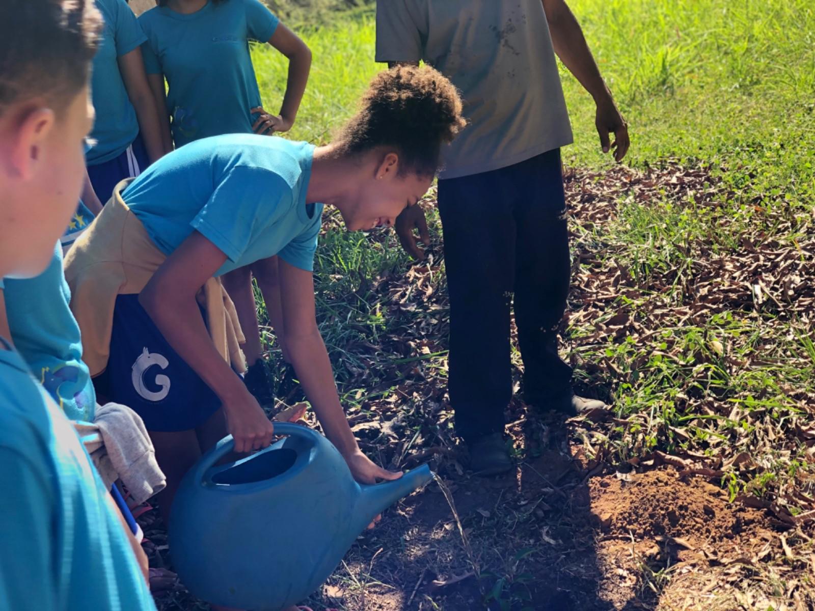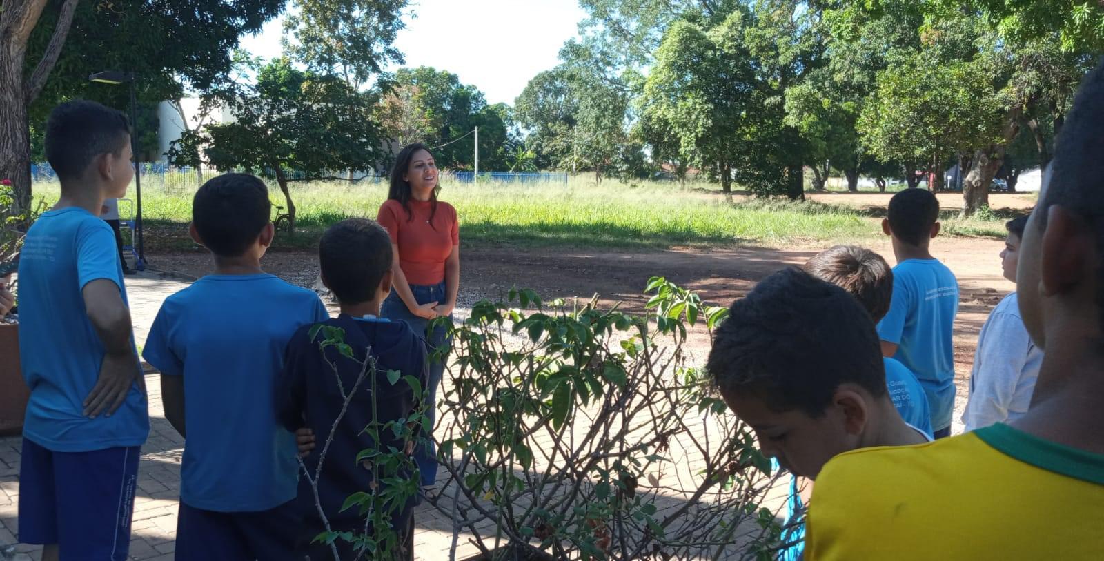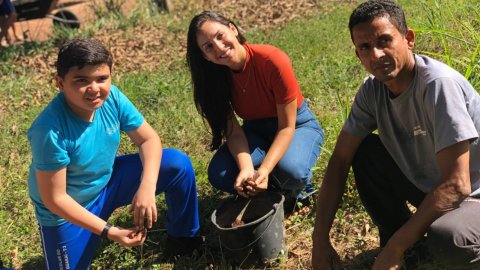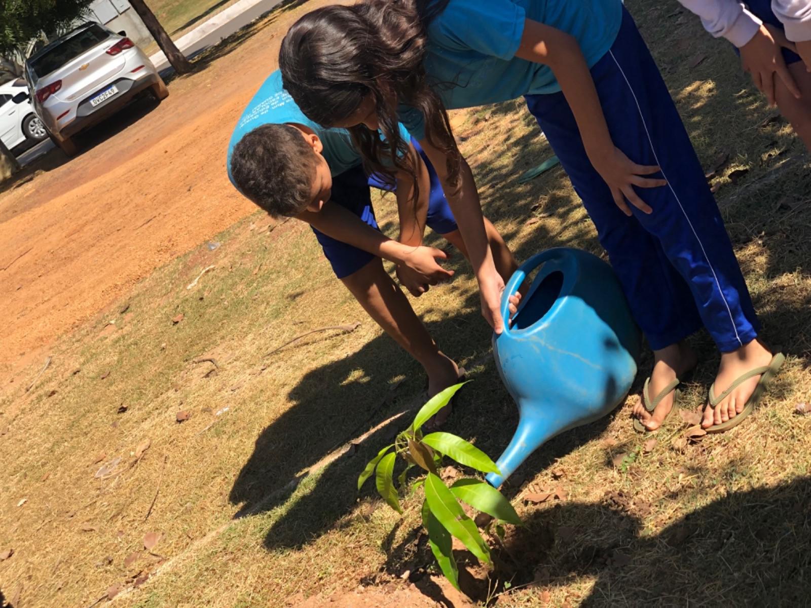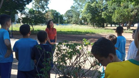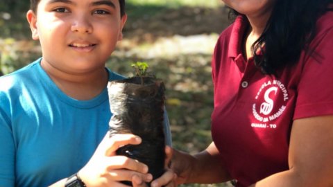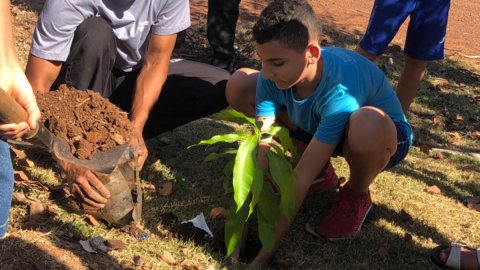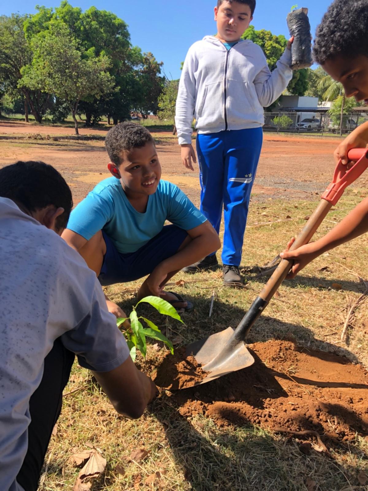 Dentro da programação de atividades do projeto EducaJus - De papo com a Justiça, na quarta-feira (7/6), alunos do 9º ano da Escola Municipal Núcleo Euclides da Cunha, situada na região Beira do Rio, zona rural de Guaraí, realizaram o plantio de uma muda da espécie Ata (Annona squamosa L. Nomes Comuns) junto à equipe coordenada pela juíza auxiliar da presidência, Rosa Maria Rodrigues Gazire Rossi.