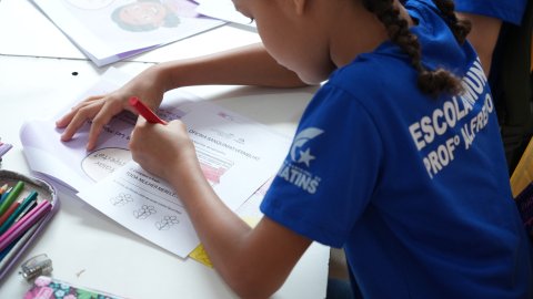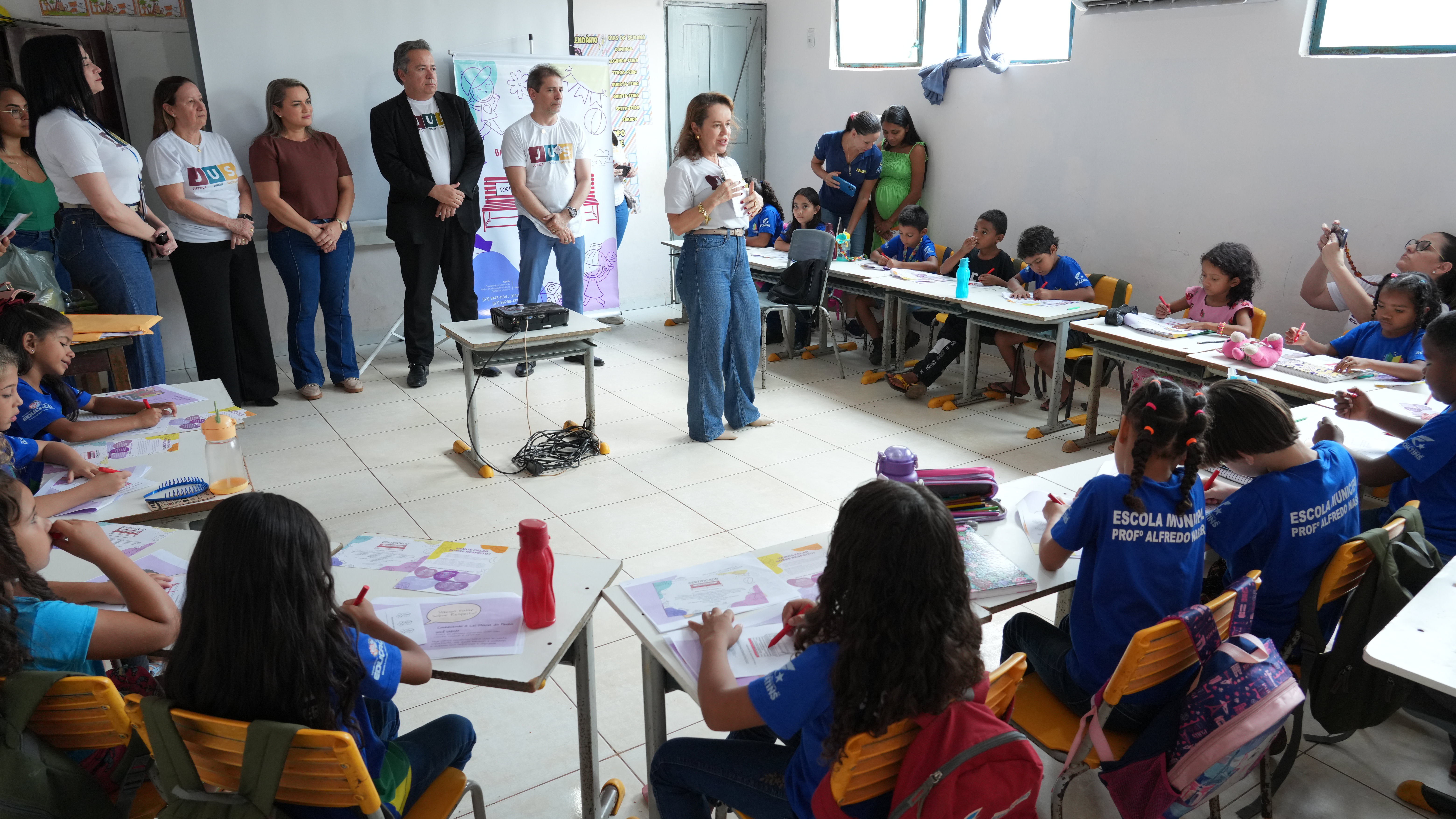 Ao todo, 77 alunos da Escola Municipal Professor Alfredo Nasser participaram da ação, que incluiu roda de conversa lúdica; leitura de cartilha infantil sobre a Lei Maria da Penha; pintura do desenho do Banco Vermelho; e entrega de certificado simbólico de “Guardião(ã) da Paz”.