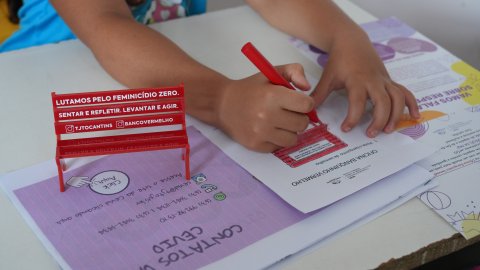 Durante o Dia D, também foram realizadas as Oficinas “Banquinho Vermelho – Toda Mulher Merece Respeito”, com crianças do ensino fundamental, com o objetivo de educar para o respeito à mulher e incentivar o tratamento igualitário entre homens e mulheres.