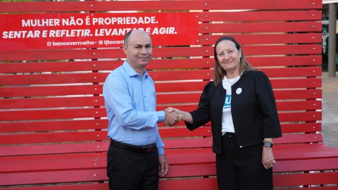 Ao citar números do feminicídio, que representam vidas e famílias destruídas, a presidente ressaltou que o banco, em sua cor vibrante, grita contra o silêncio, a indiferença e a normalização da violência.