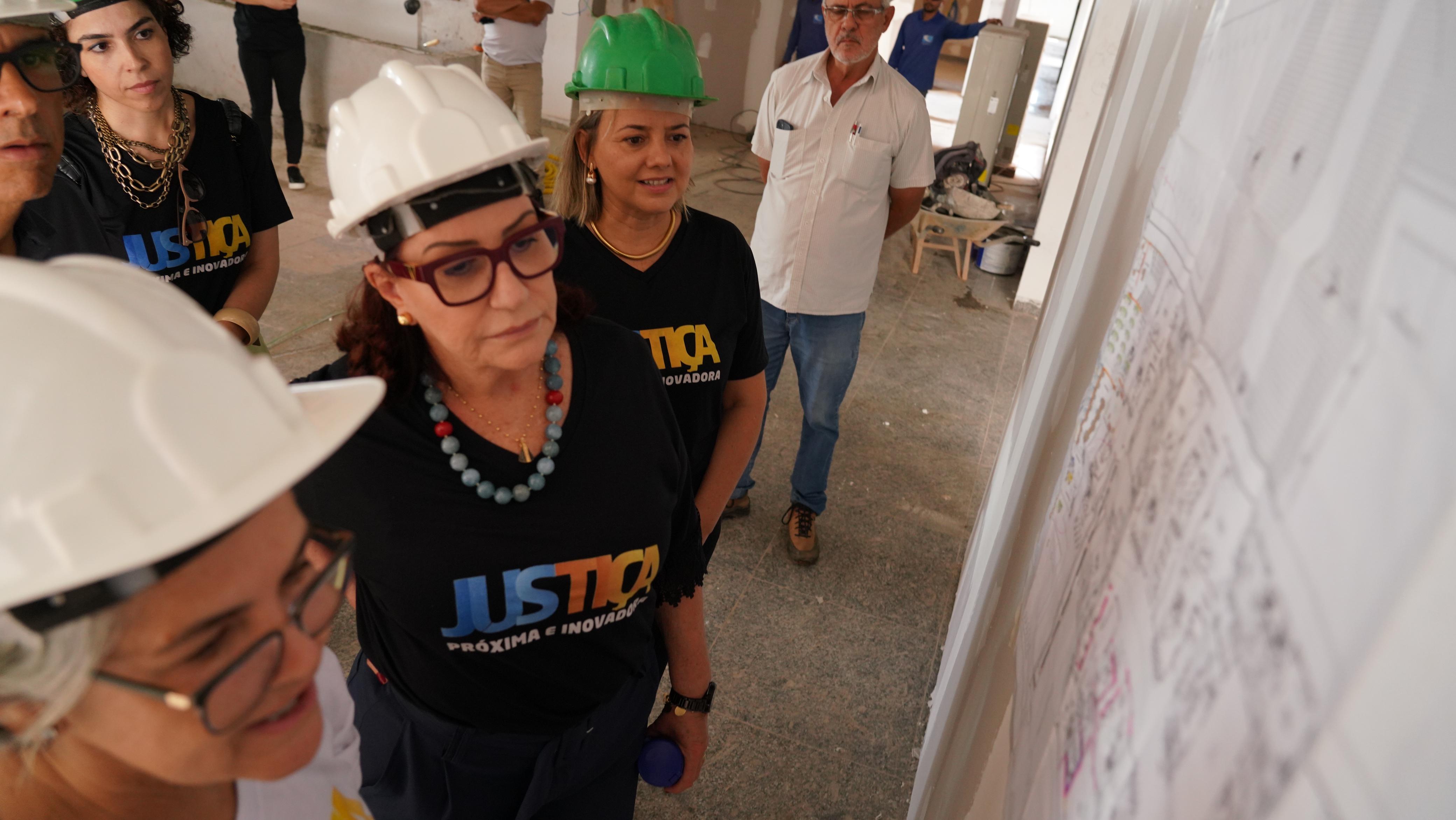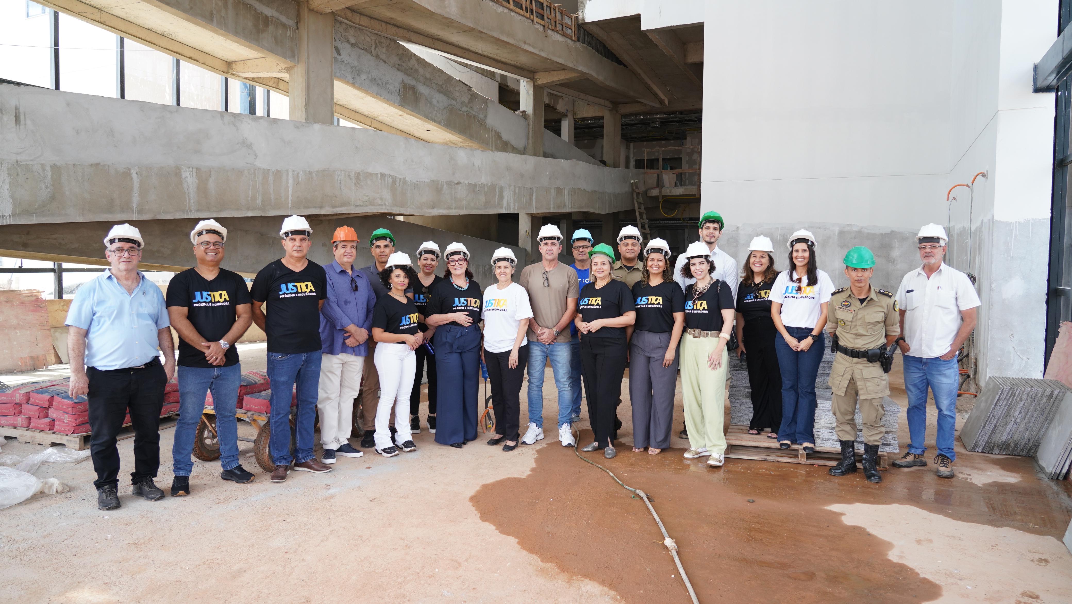Antes da reunião, a presidente do TJTO, desembargadora Etelvina Maria Sampaio Felipe, acompanhada da diretora-geral, Ana Carina Souto, da diretora de Infraestrutura e Obras, Rosane Helena Mesquita Vieira, do arquiteto Juarez Marinho e do engenheiro Zailon Labre Batista Miranda, visitou as obras do novo prédio da comarca de Gurupi, no Centro Administrativo da cidade.