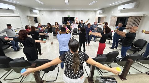 A iniciativa foi encerrada com ginástica laboral, realizada pela fisioterapeuta do Centro de Saúde do Tribunal (Cesau/TJTO), Hozana Lemos, com apoio dos fisioterapeutas credenciados através do programa de interiorização dos serviços de Saúde do Poder Judiciário, Jeová Leones e Nayma Cavalcante.