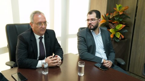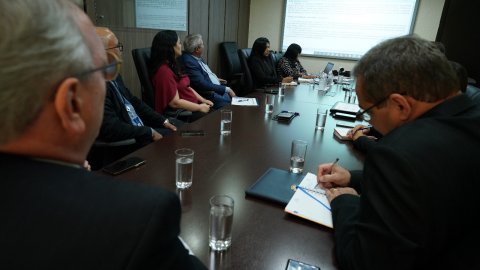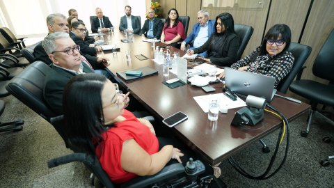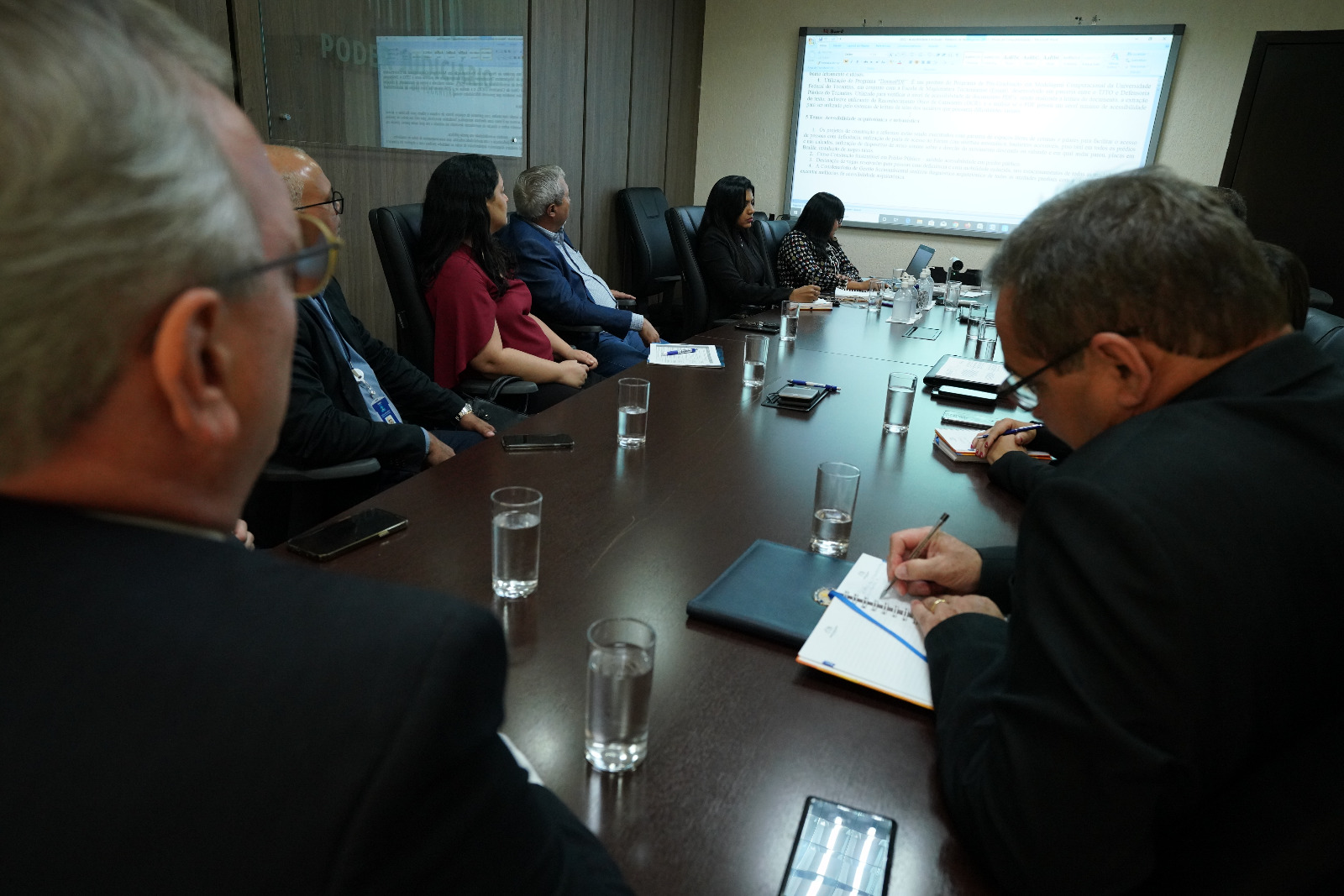 Desembargador Pedro Nelson em reunião com diretoria para apresentação do Relatório de Acessibilidade e Inclusão