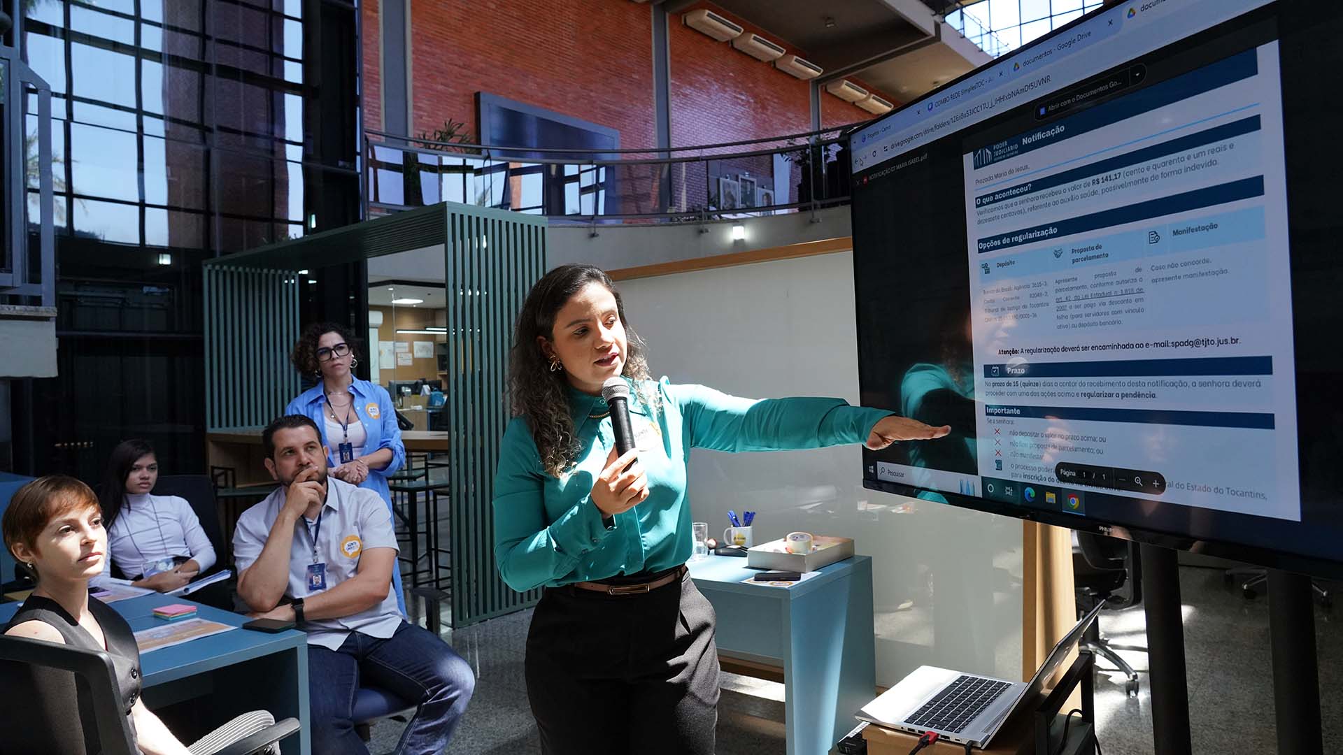 Contribuíram na oficina os agentes SimplesTOC: laboratorista do Inovassol, Bruno Vieira de Melo Aguiar; secretária de Processos Administrativos do TJTO, Lorrana Ximendes; e servidora da Comissão Permanente de Acessibilidade e Inclusão (CPAI), Patrícia Idehara.