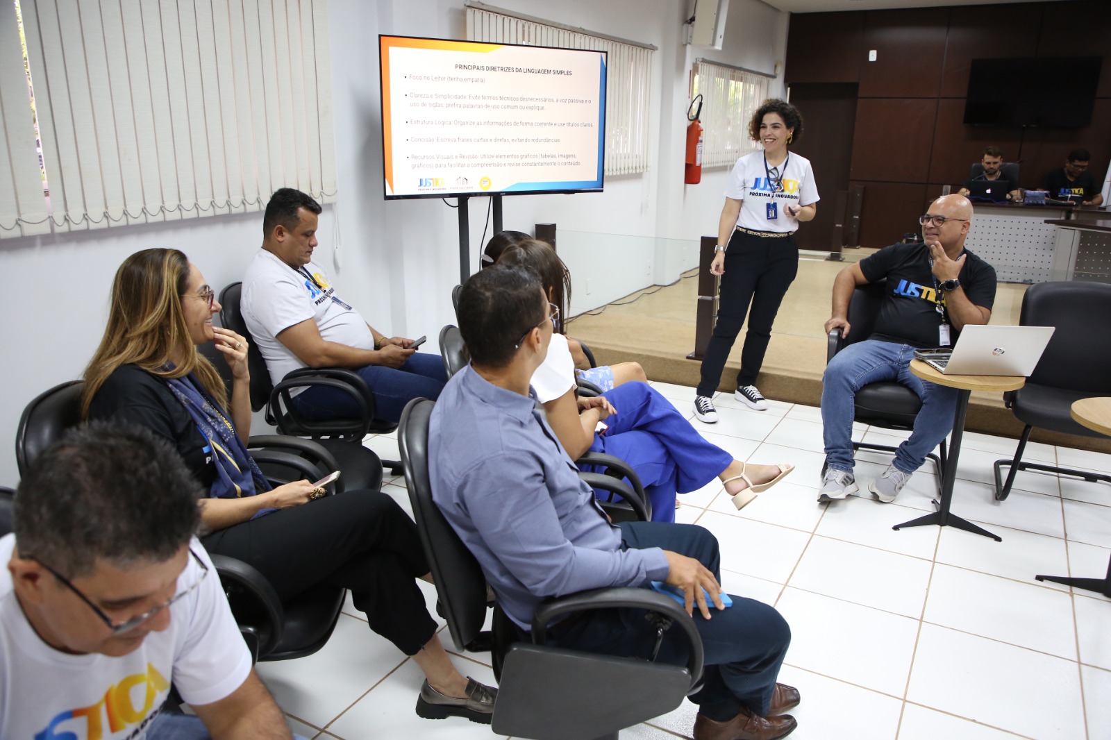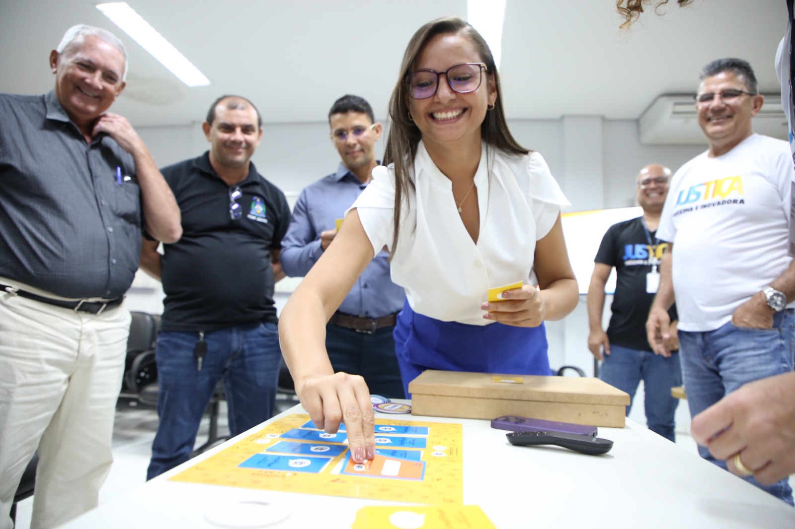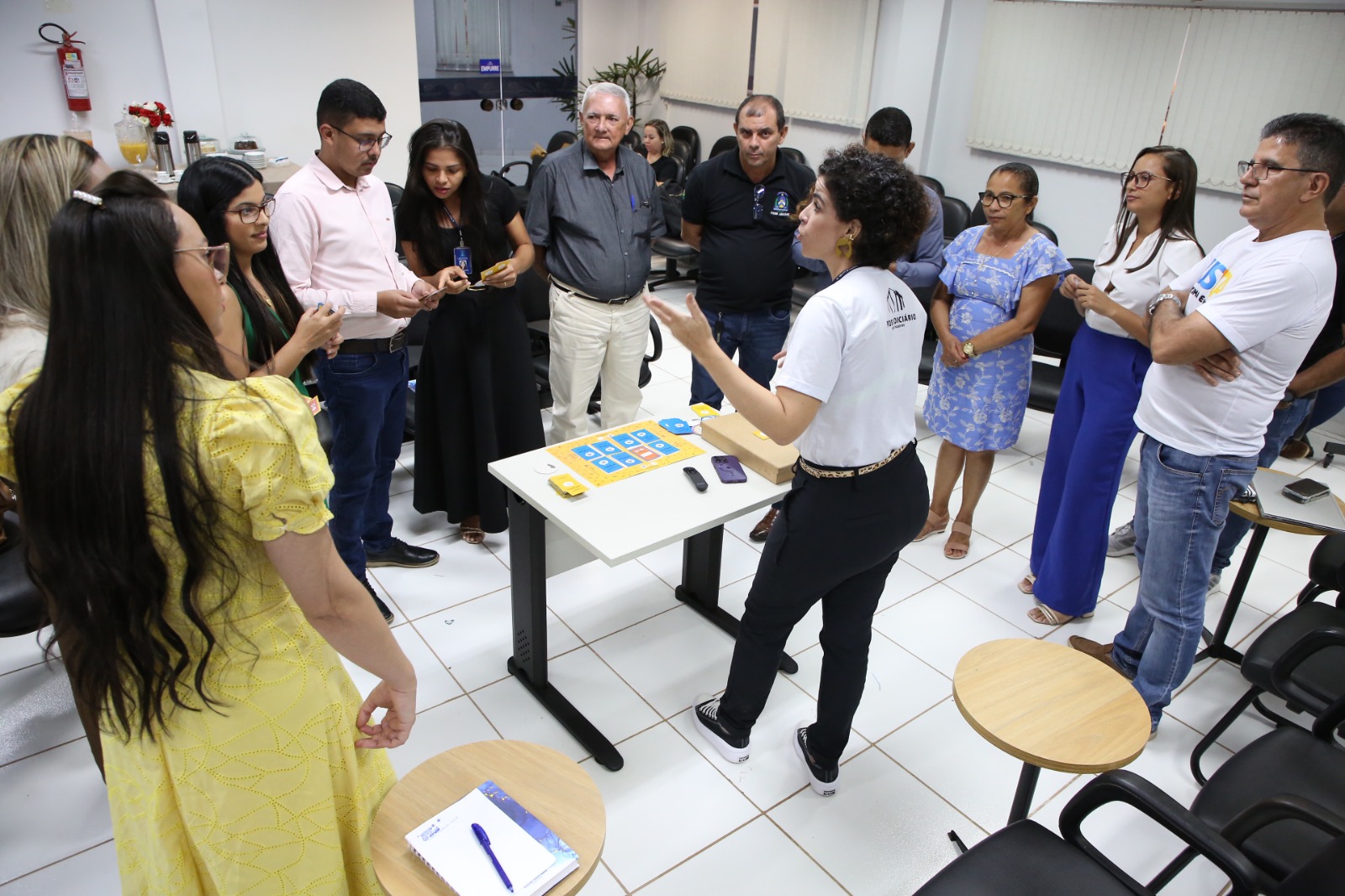 Seguindo a programação, outro ponto alto foi o Jogo da Linguagem Simples, que se destacou pela formação de coletivos diversos, mesclando experientes e novos servidores, para refletirem sobre o juridiquês e traduzi-lo em conteúdo acessível aos cidadãos e cidadãs atendidos pela Comarca.
